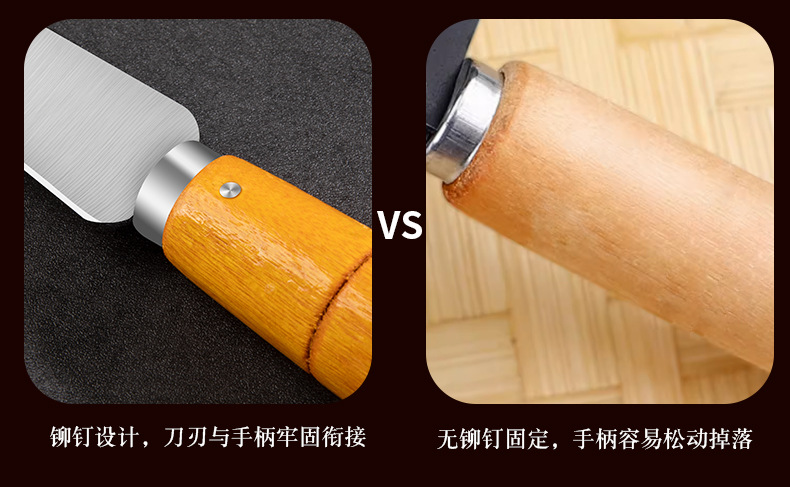 ステンレスの包丁を切る家庭用の鍛打丸刃キッチン専用の刃物は鋭利で骨を切っています。