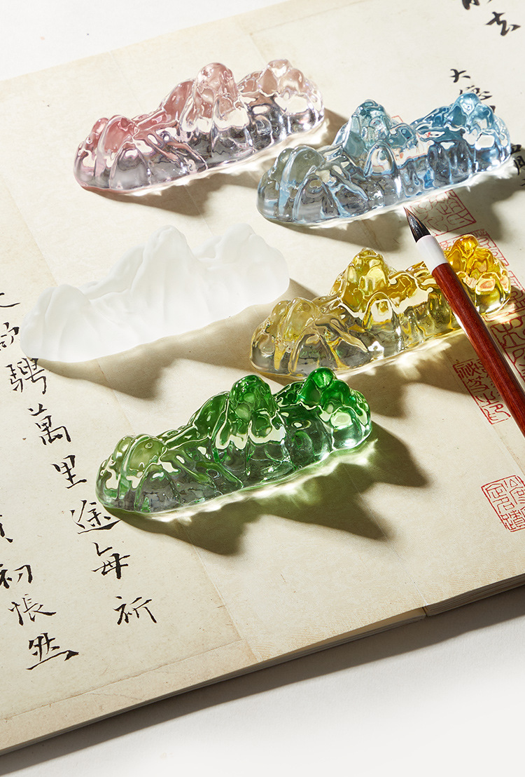 筆置き水晶ガラス山川筆山学生国画書道専用鎮紙鎮尺棚筆筆