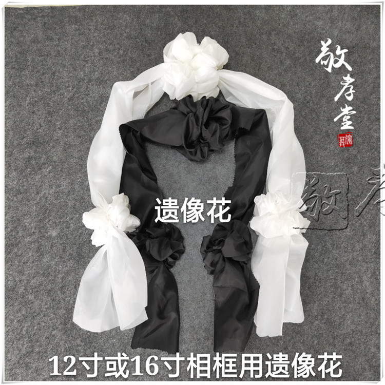 手は立体の鏡の枠の花のフォトフレームの花の黒い紗の黒い花の遺影の絹織物の花を縛って葬式の葬儀の葬儀の葬儀の儀式の卸売りを祭っています。