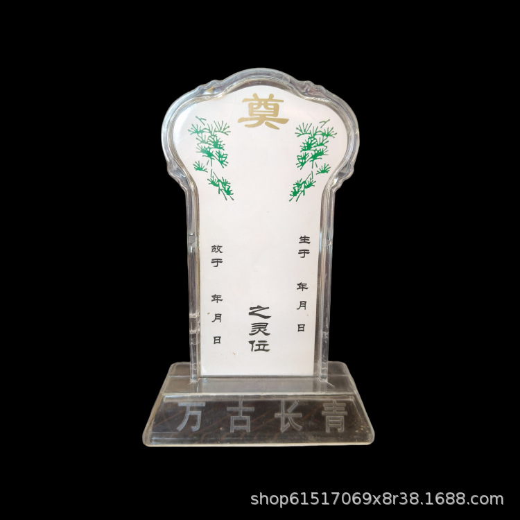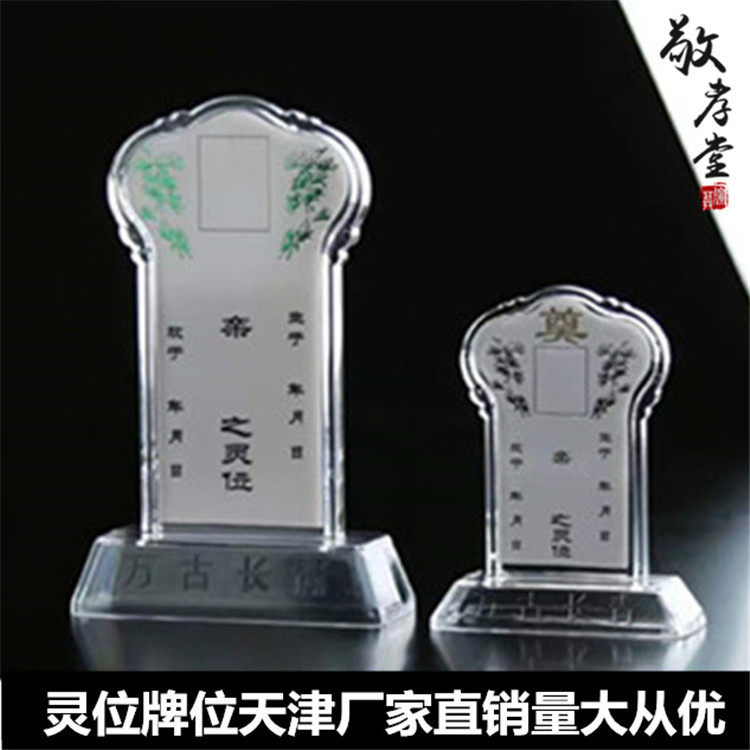 メーカー卸売りプラスチック霊位水晶樹脂牌位複数種類の葬儀用品は水晶透明白色霊牌を祭る