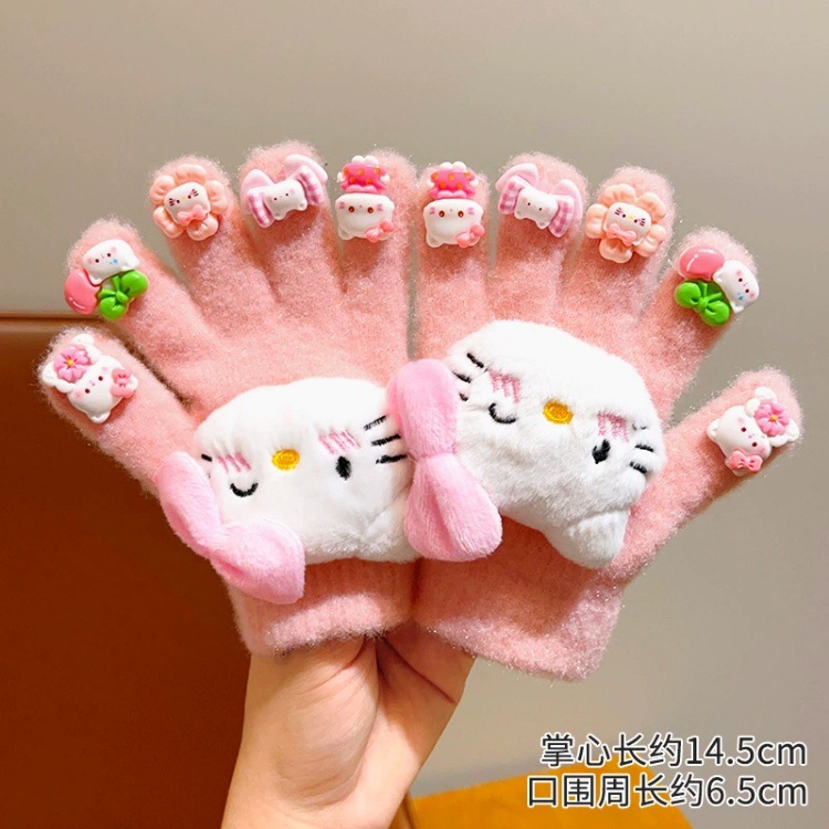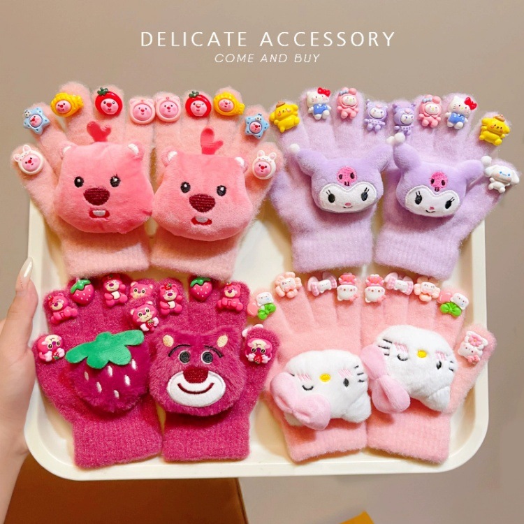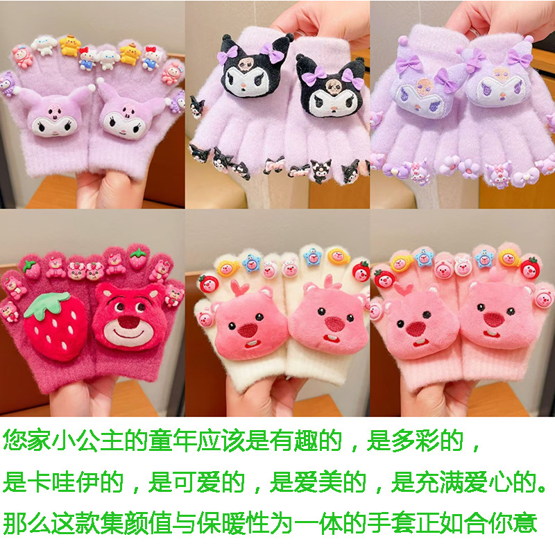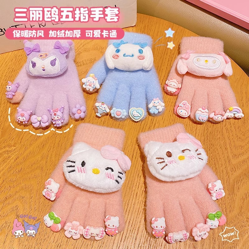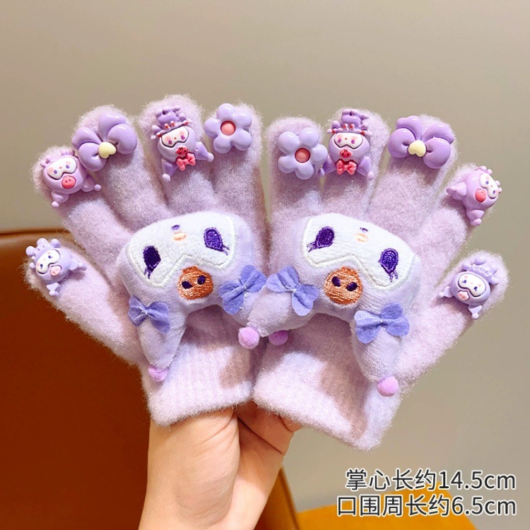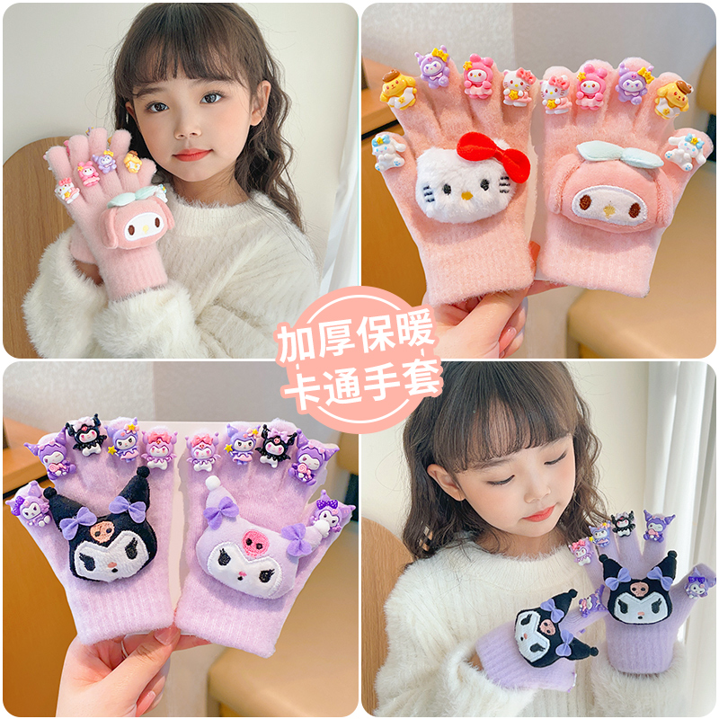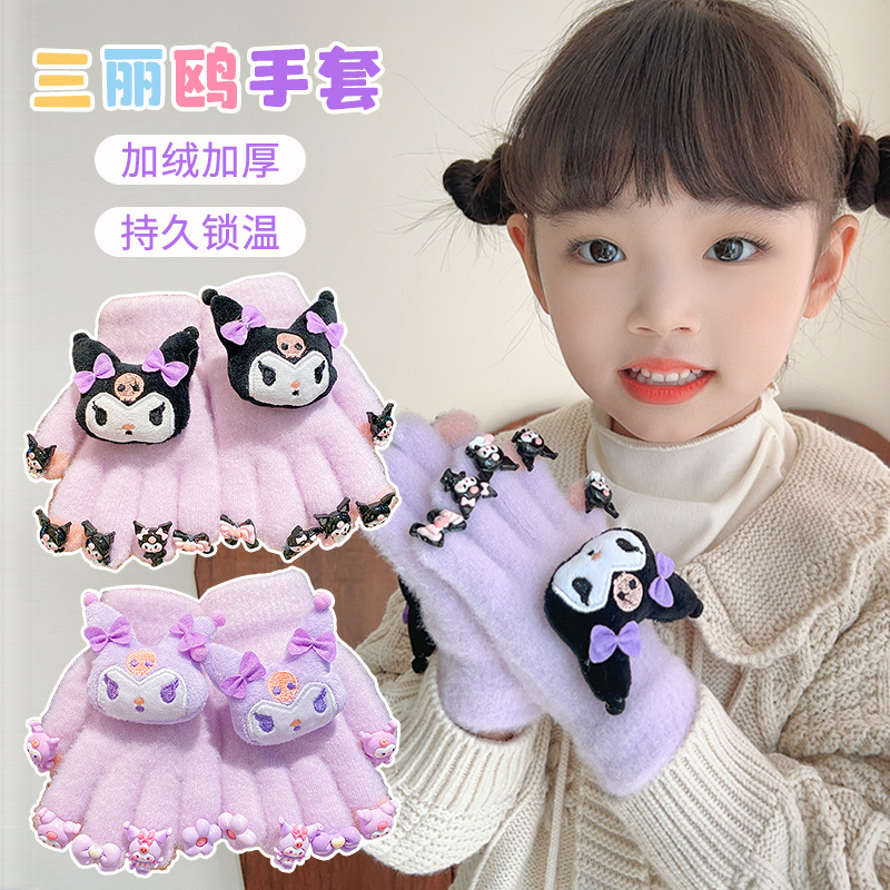 かわいいサンリオ児童手袋2024冬の女の子のクロミ五本指セットとベルベット保温防寒指セット