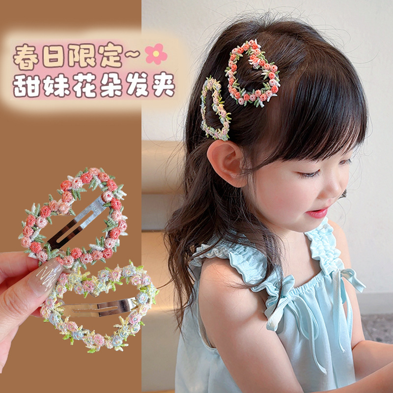 子供の雰囲気感の愛のbbクリップの側のピンクの刺繍の新型の美しい女の子の砕髪の前髪のクリップの頭飾り