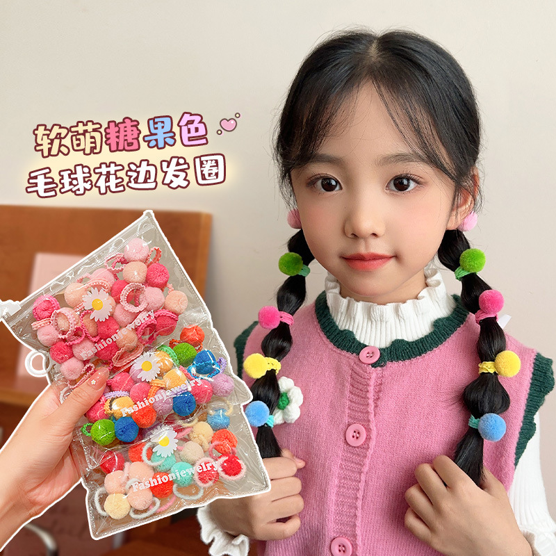 子供用ヘアゴム 女の子 キャンディーカラー ファー付き レースヘアバンド 女の子用 ポニーテール飾り リボン 春の新作
