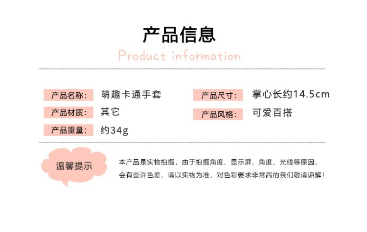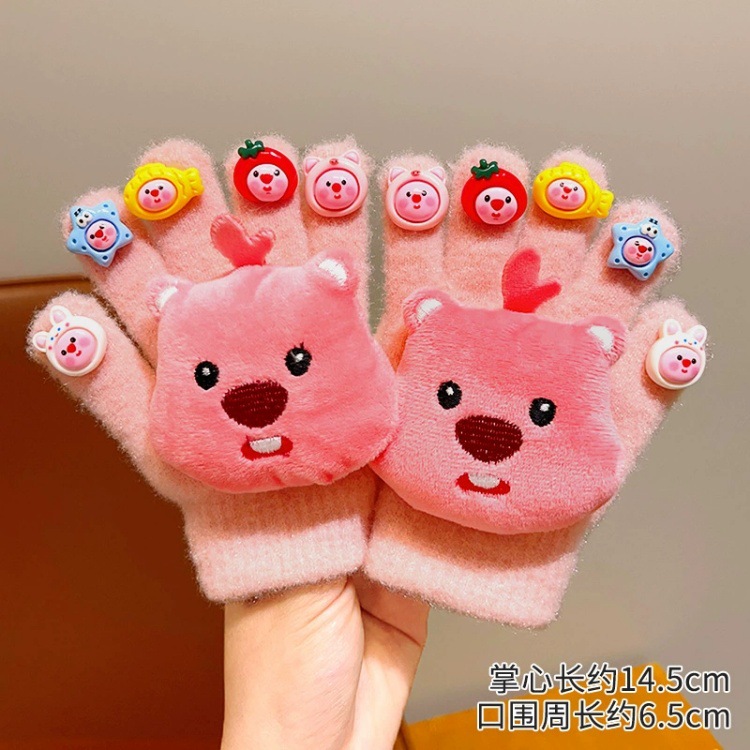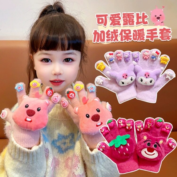 子供用手袋秋冬可爱い女の子5本指漫画ぬいぐるみ5本指手袋女の子防风保温指サック