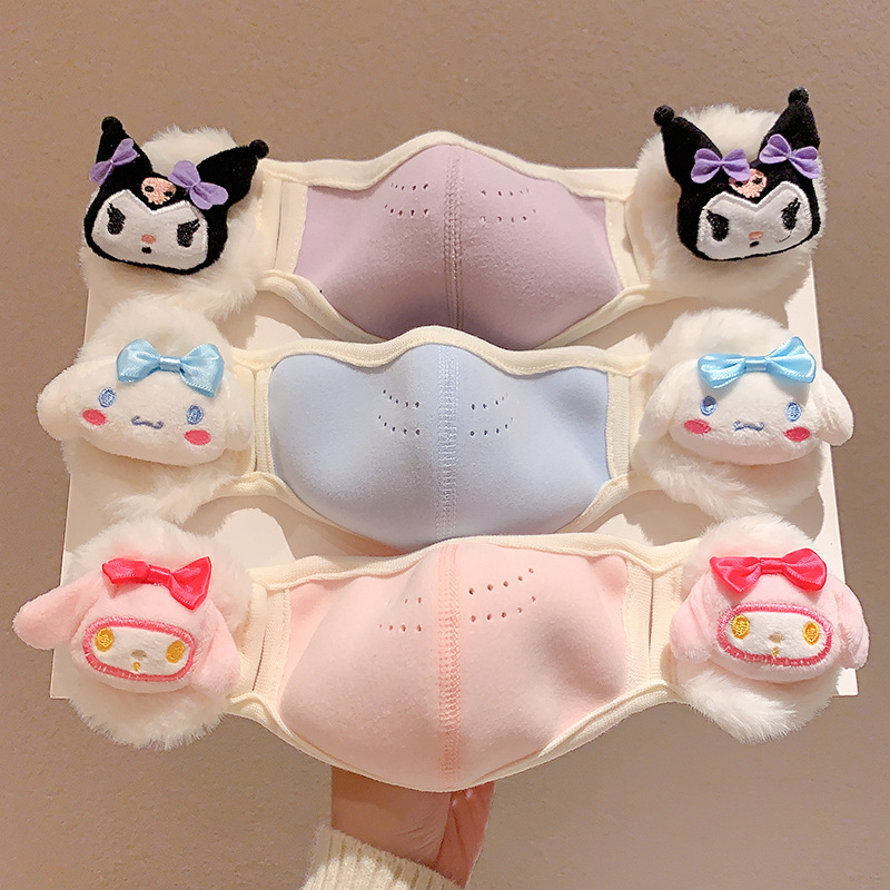 かわいい綿を充填したクロミ児童保温マスク耳カバー一体少女防寒耳保護と厚いマスク耳バッグ