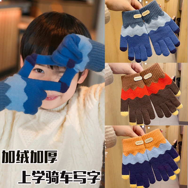 儿童手套冬季五指加厚加绒男孩女孩6-14岁保暖中大童学生户外防寒