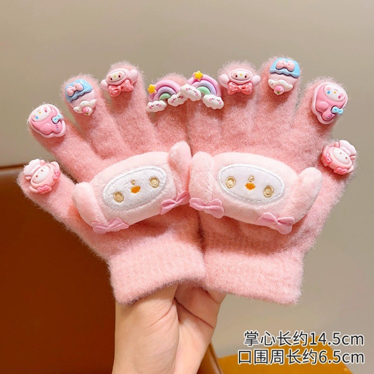 儿童秋冬美甲手套可爱女童库洛米毛绒五指套小女孩防风保暖分指套