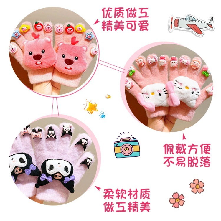 儿童手套冬季保暖2025库洛米防冻男女童美甲DIY宝宝加厚五指手套