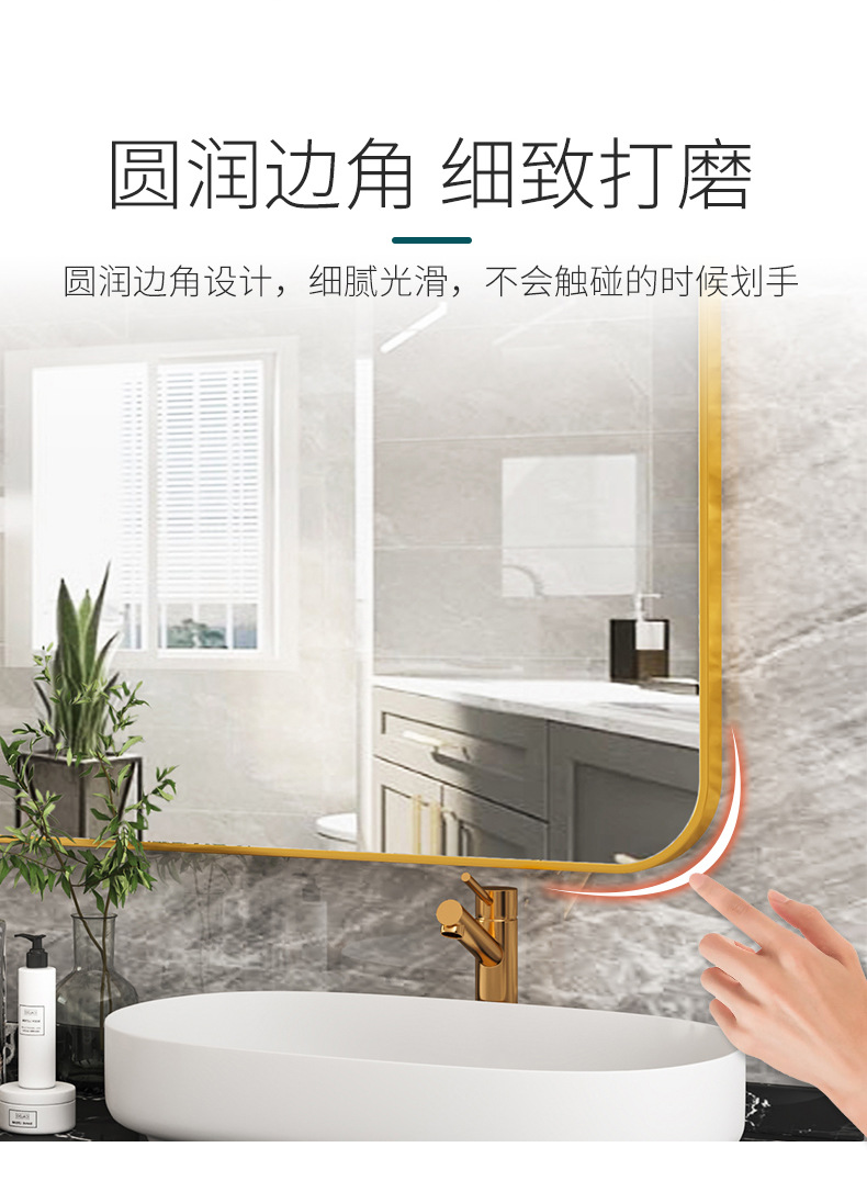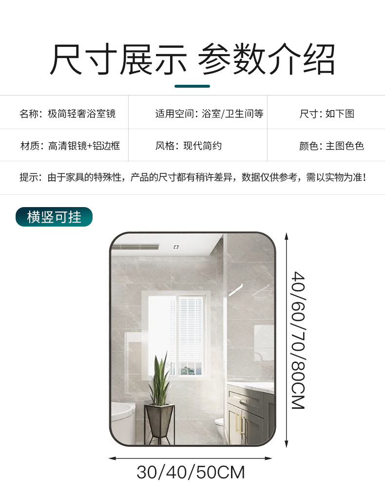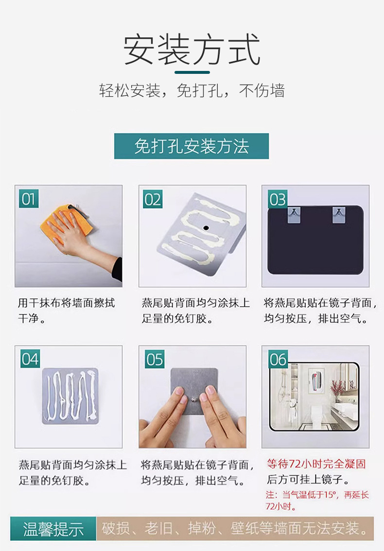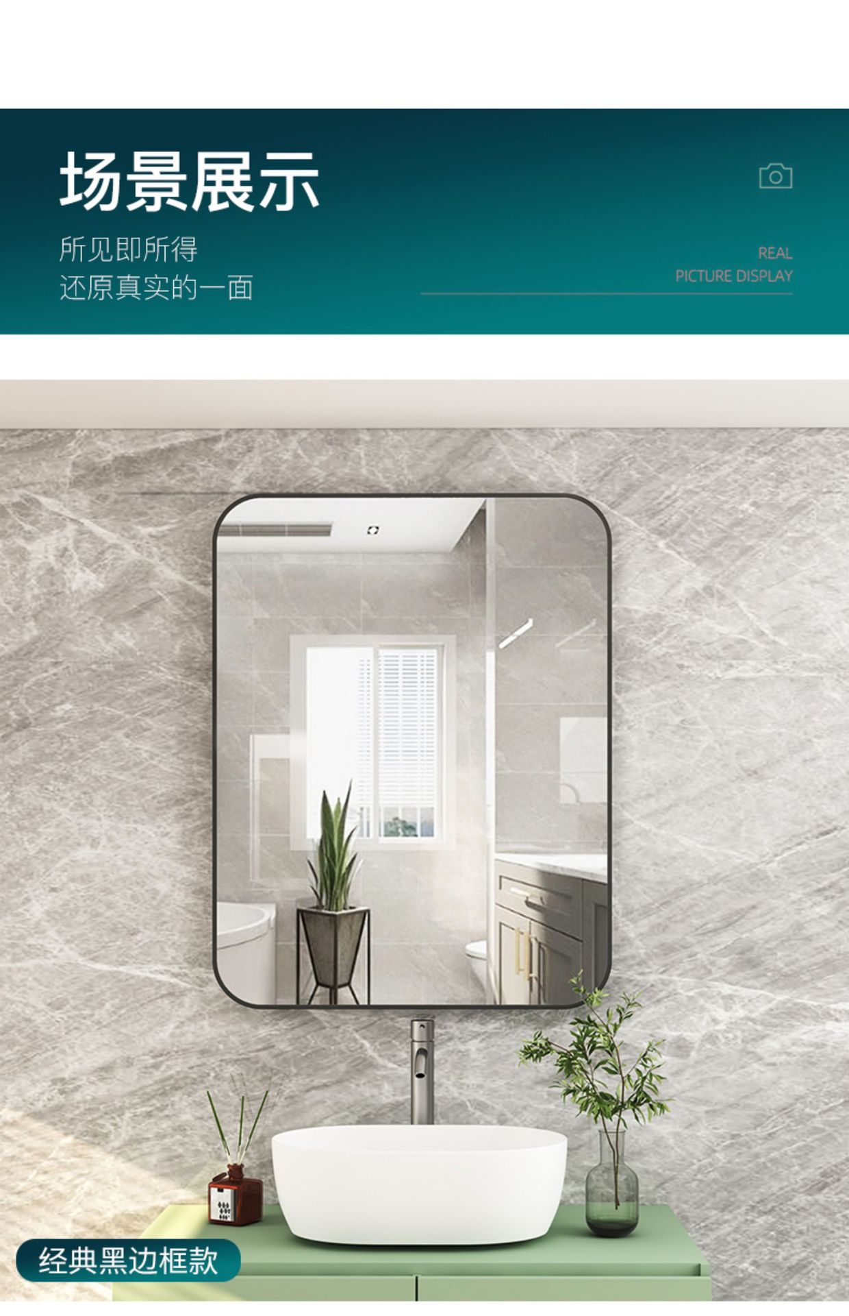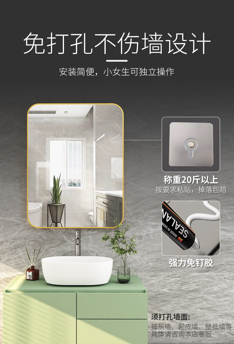 方形贴墙自粘壁挂镜卫浴镜民宿酒店洗漱台镜挂墙式玻璃镜镜子