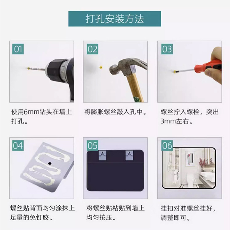 お風呂の鏡の洗面台の化粧鏡の壁掛け式の穴を開けないで壁に貼ってください。