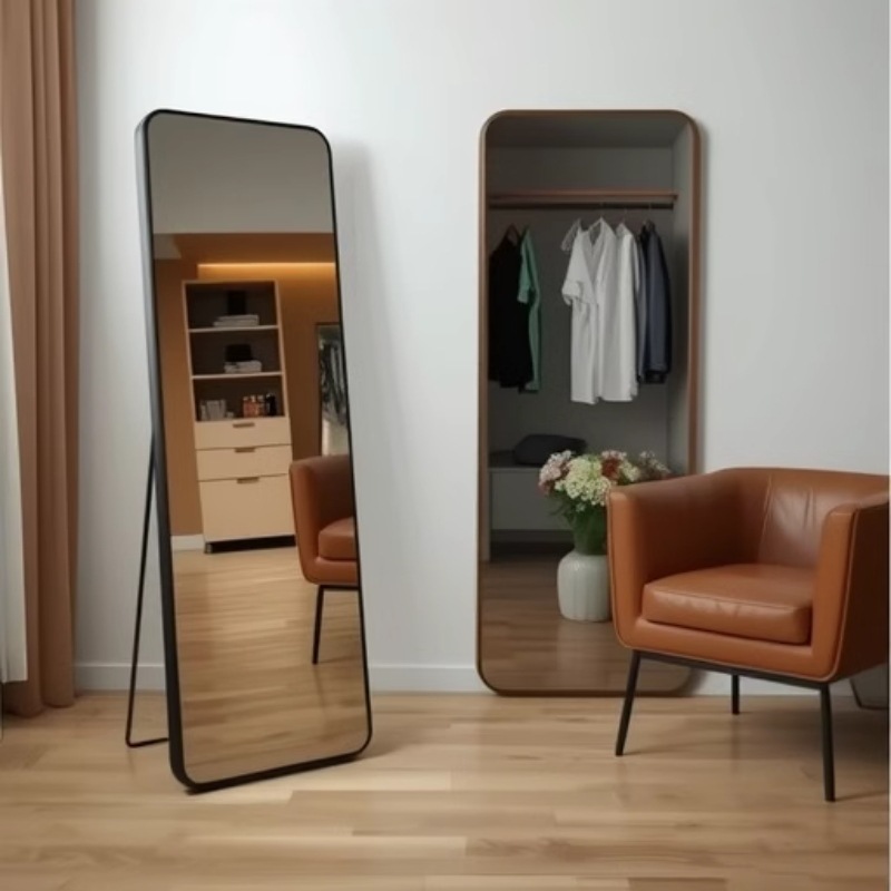 シンプルなフロアミラー、家庭用全身鏡、リビングルームのフロアミラー、アルミニウム合金の試着鏡、軽くて豪華な寝室の壁掛け姿見