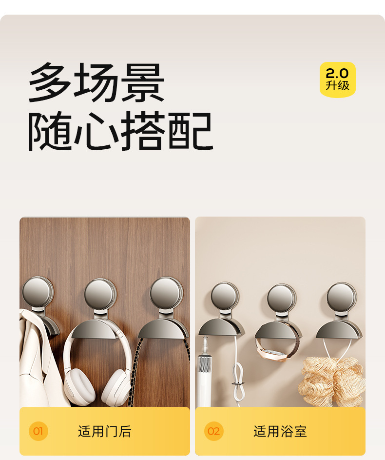 吸盤フック単フック無痕穴なしフック真空強力荷重浴室トイレドア後壁フック
