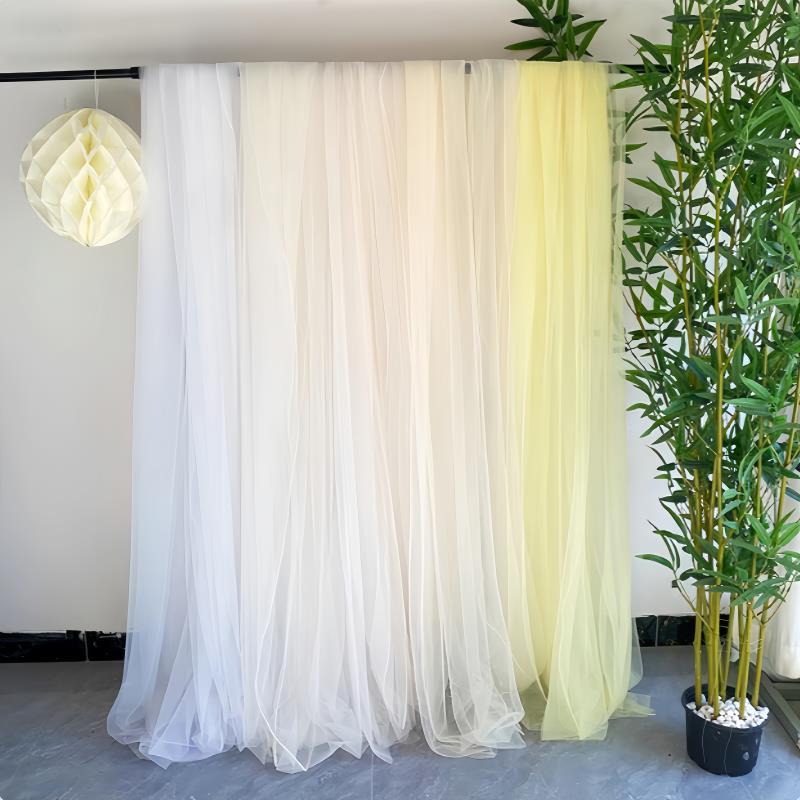 ベージュシャンパン黄色ソフトガーゼ結婚式プロポーズ迎賓背景滝糸民宿シーン配置天井カーテン
