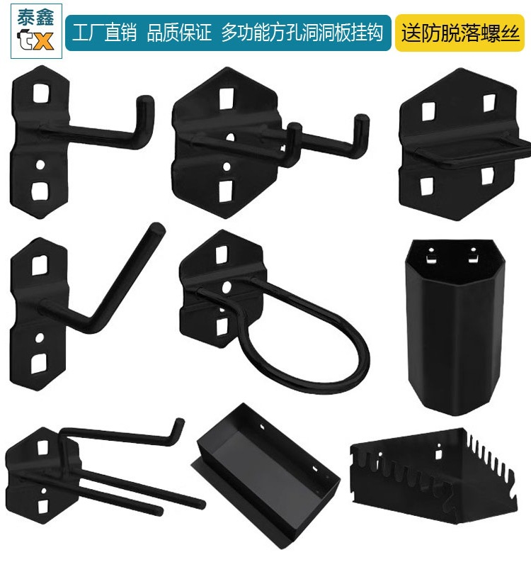 四角い穴の穴の板のフックの金属の工具の棚の部品の金属の黒色の工具のフックの展示の収納の置物の掛け板