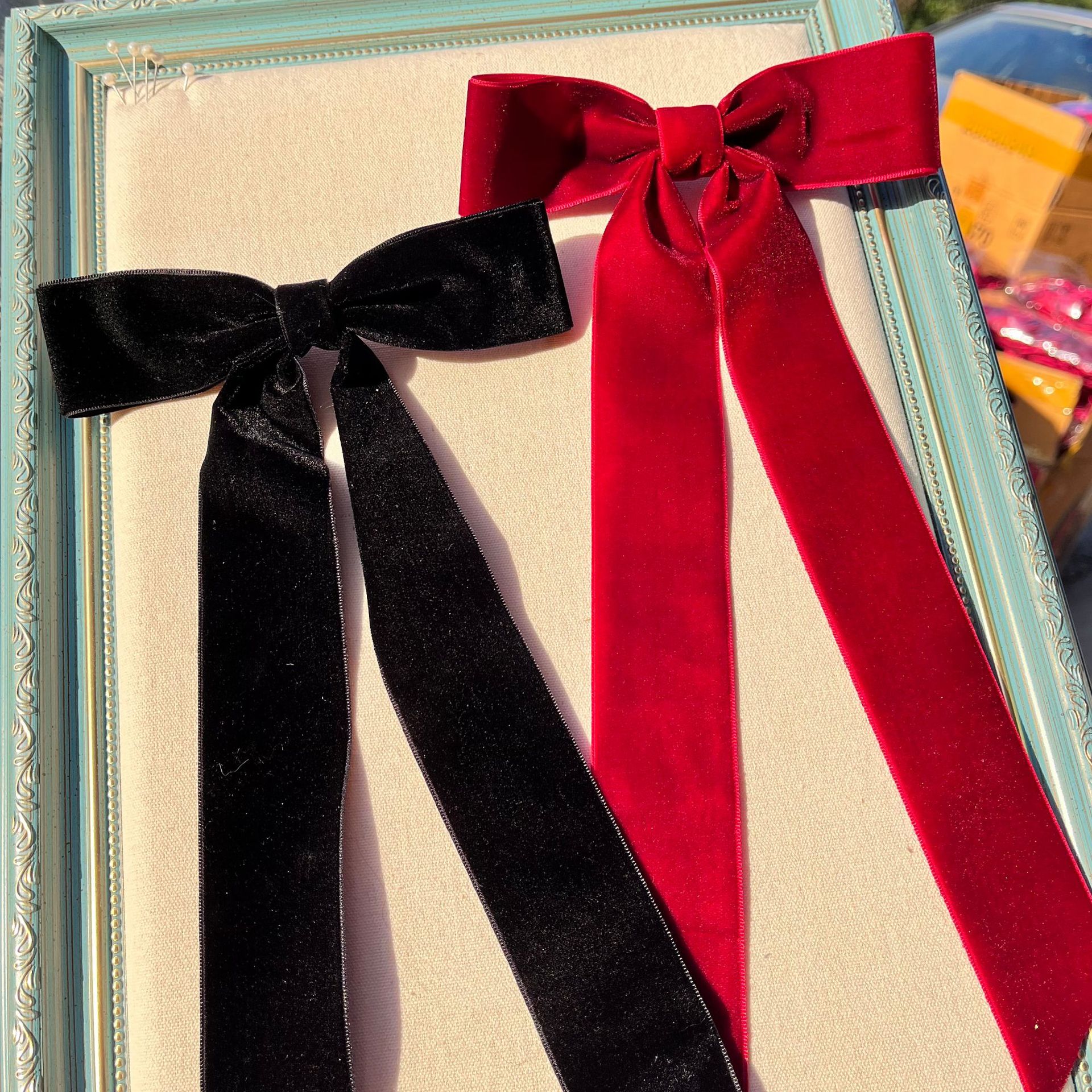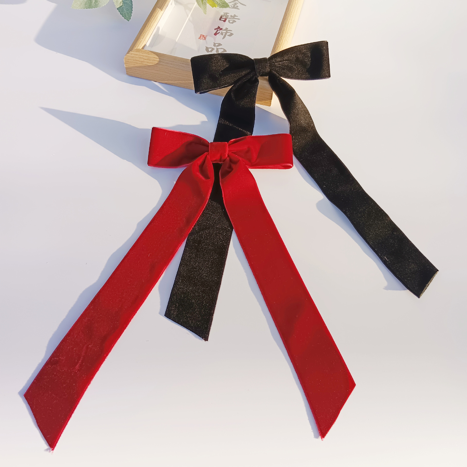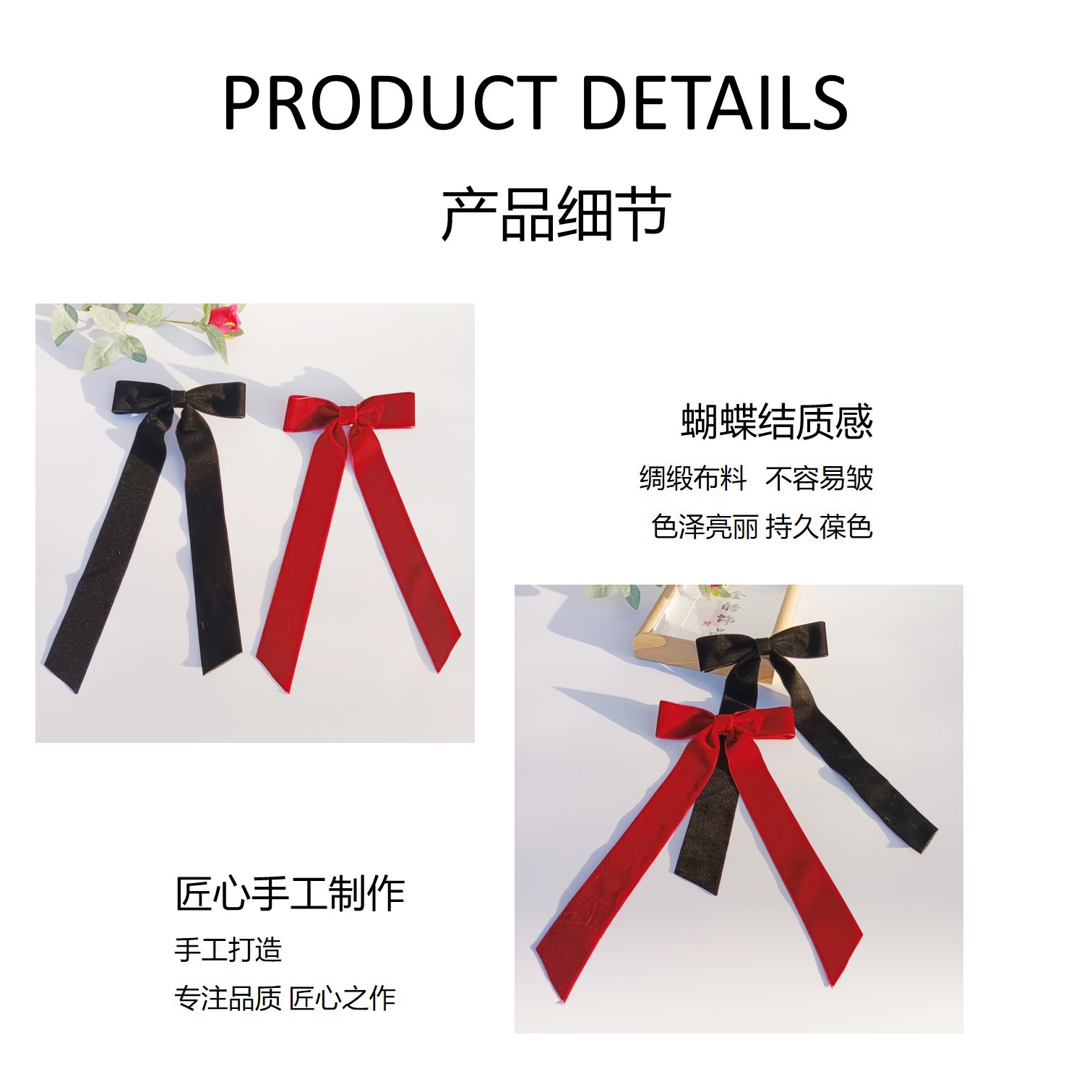 露店夜市ネット赤蝶ネクタイ馬尾髪飾り二元店サテン高頭トップバレエ黒後頭部ヘアピン