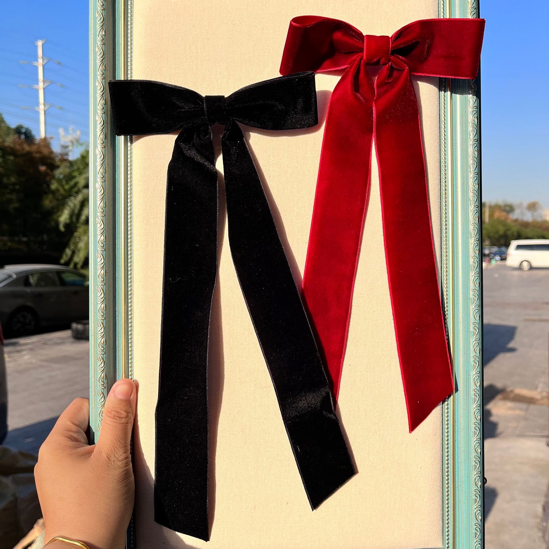 外国貿易のレトロな大きい蝶結びの髪のクリップの後頭部の固定の髪のクリップinsの黒の赤い気質のスプリングのクリップの飾り