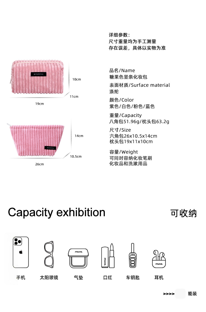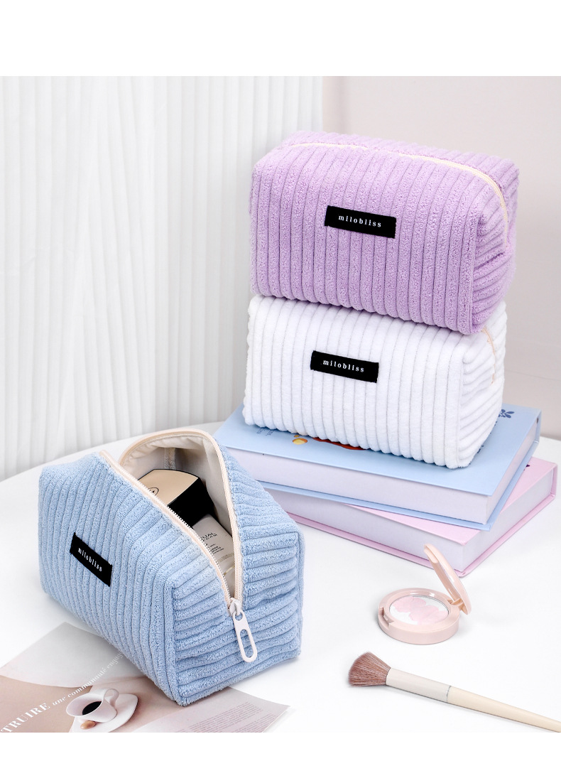 2025 新粗ストライプコーデュロイ化粧品袋秋と冬の豪華なポータブル正方形化粧品収納袋卸売