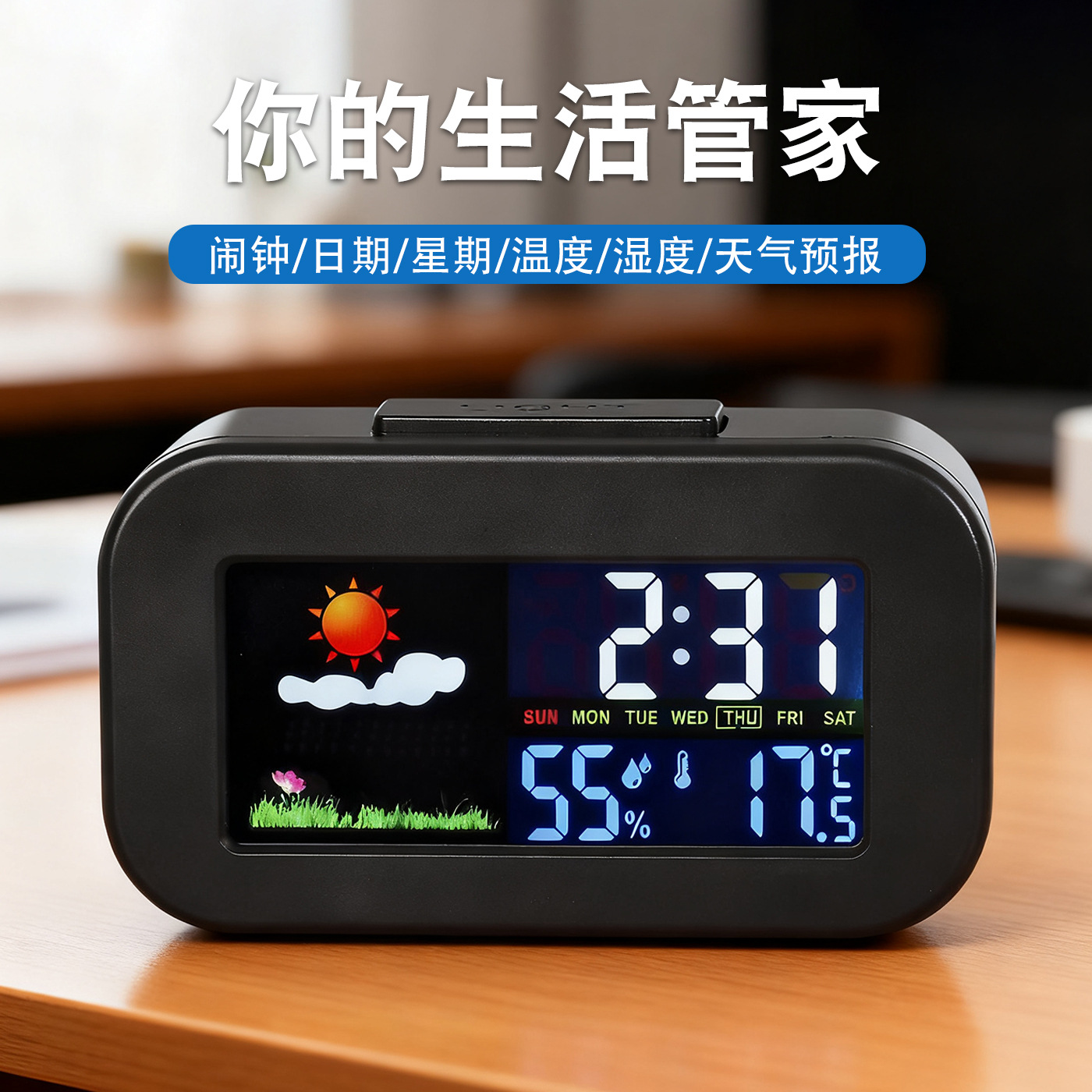 跨境多功能电子彩屏气象闹钟学生宿舍电子闹钟数字聪明钟背光时钟