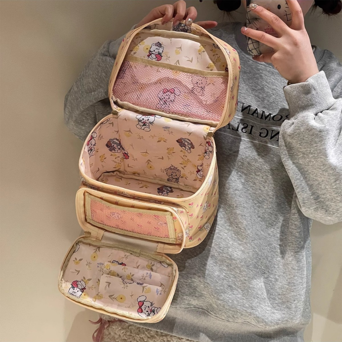 2023新型大容量同モデルの巨大な能装雲化粧バッグ二重女性携帯化粧品収納ケース袋