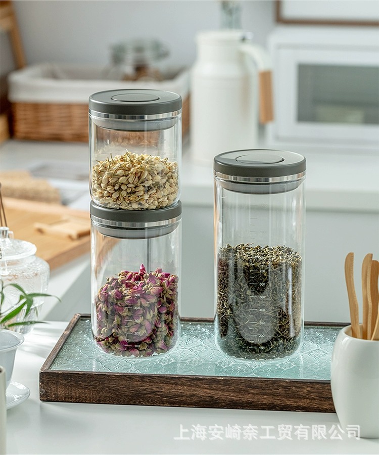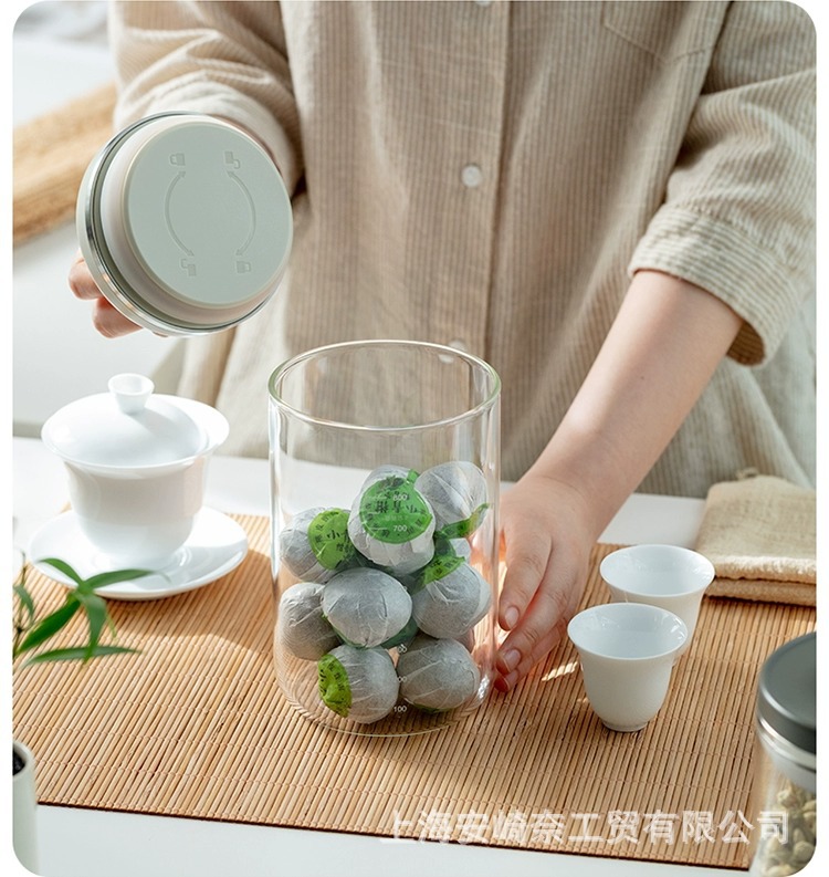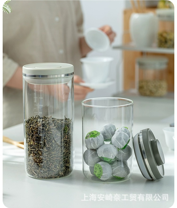 国境を越えたガラス茶葉缶真空密封缶を押して防湿缶花糊陳皮貯蔵缶コーヒー豆貯蔵
