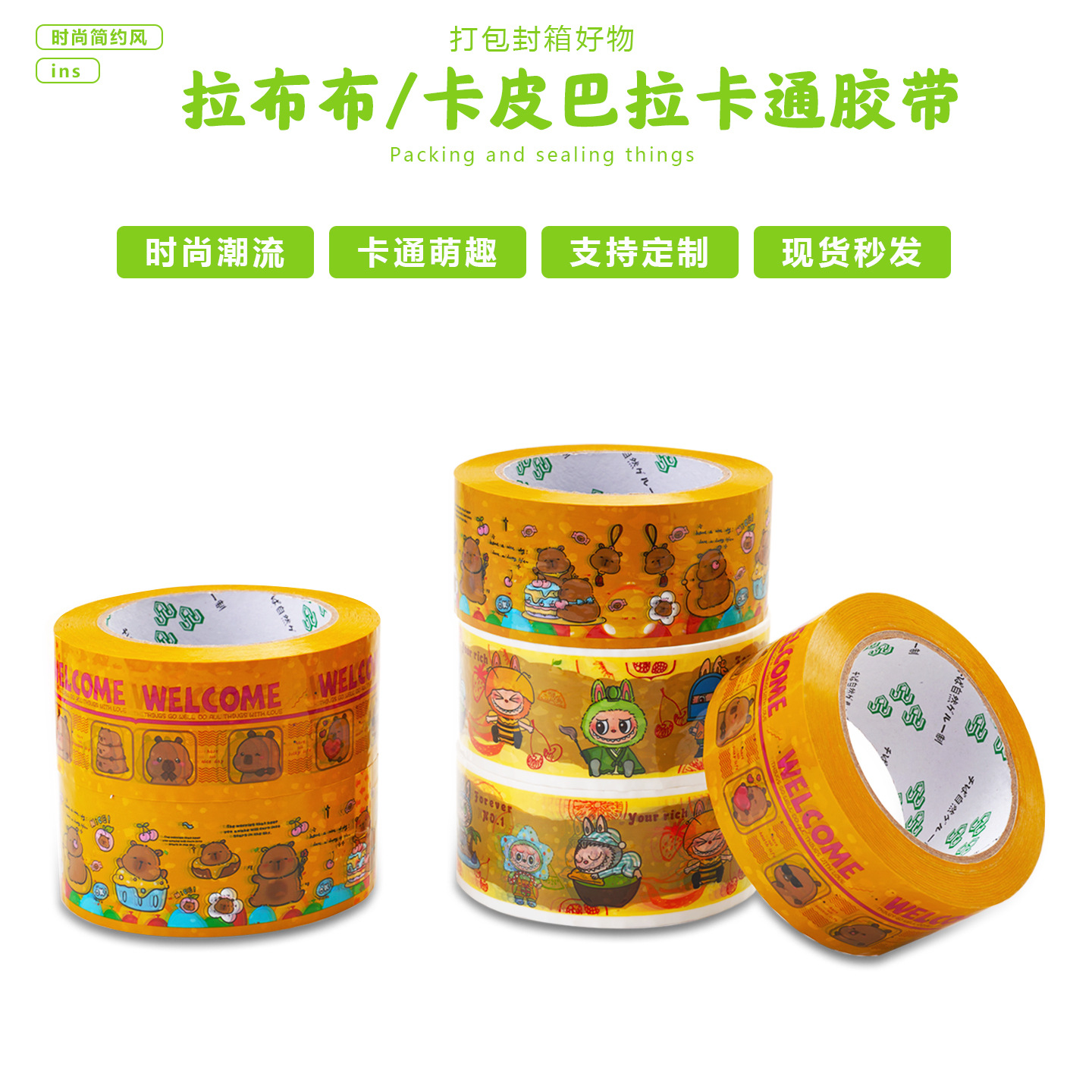 爆火款网红卡通封箱打包胶带拉布布卡皮巴拉可爱呆萌加粘加厚胶纸