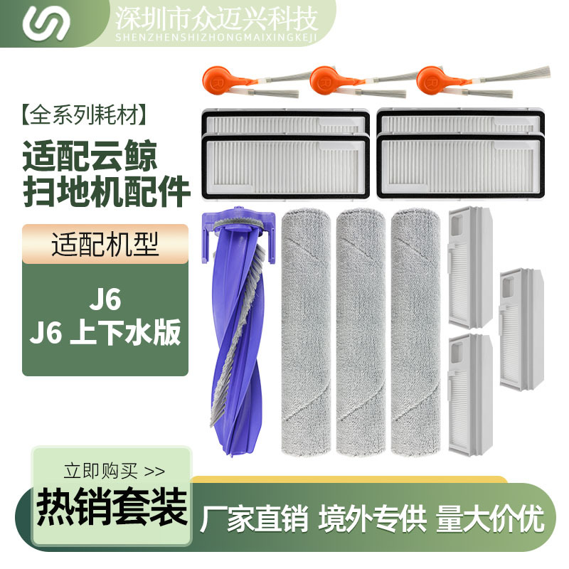 适配云鲸J6扫地机配件履带拖抹布上下水版尘袋边刷滚刷滤网清洁液