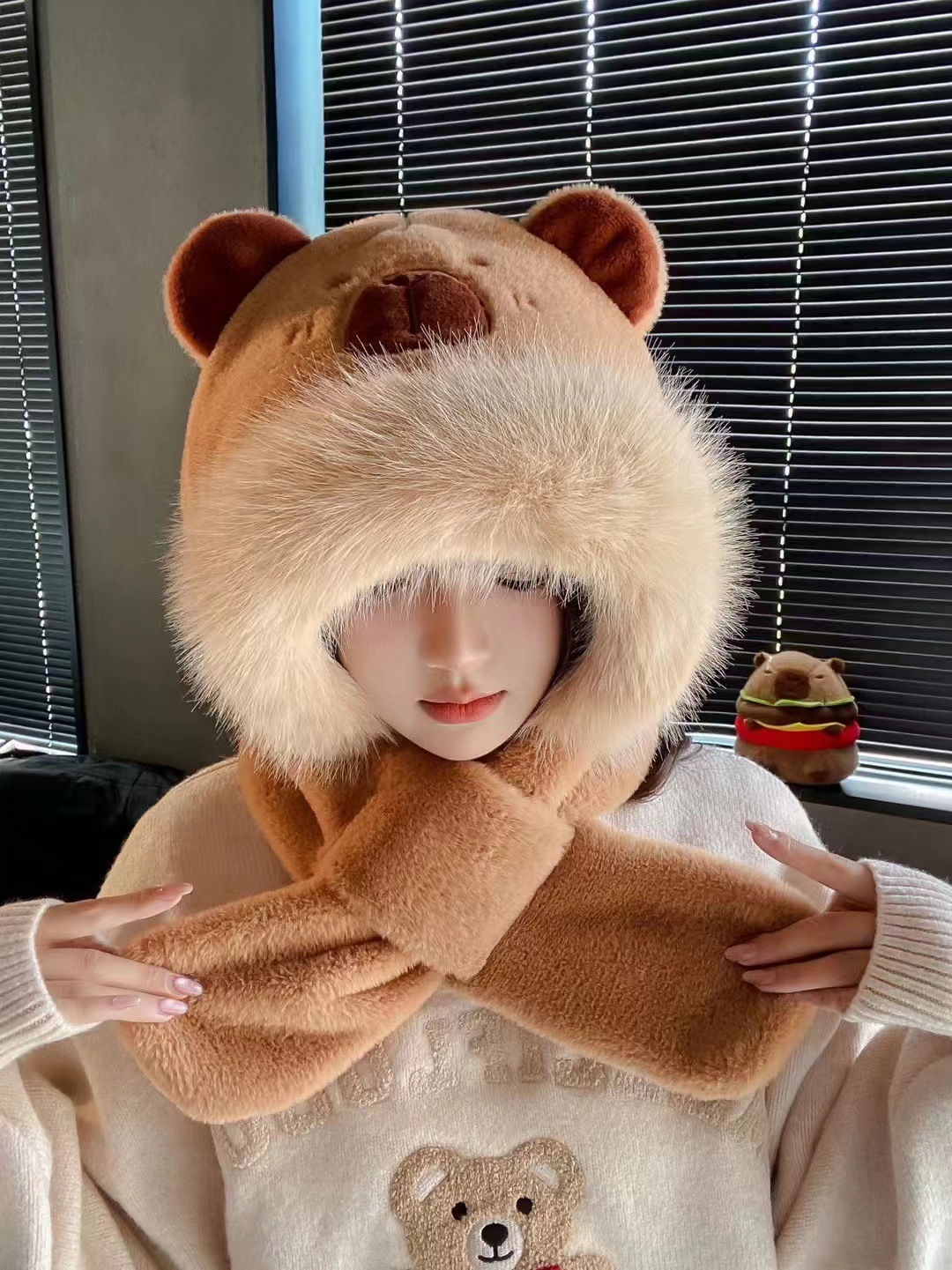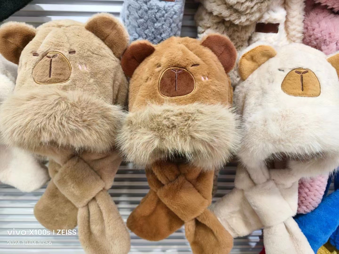 新品カピバラ帽子マフラー帽子2点セット一体冬防風保温ぬいぐるみ帽子マフラーカバー