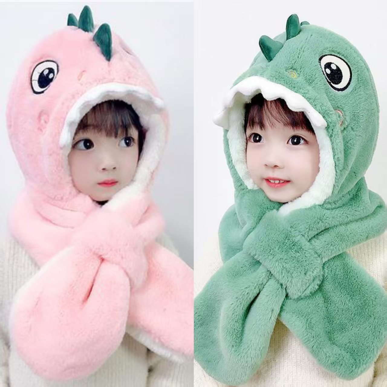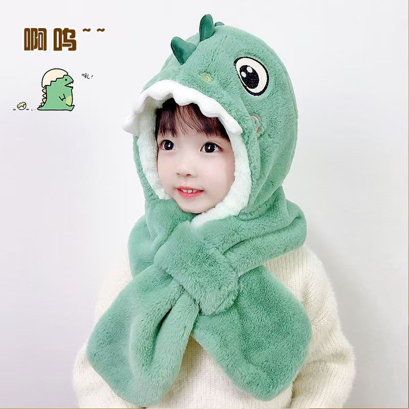 儿童帽子冬季卡通可爱小恐龙保暖护耳毛绒帽男女宝宝加厚帽围一体