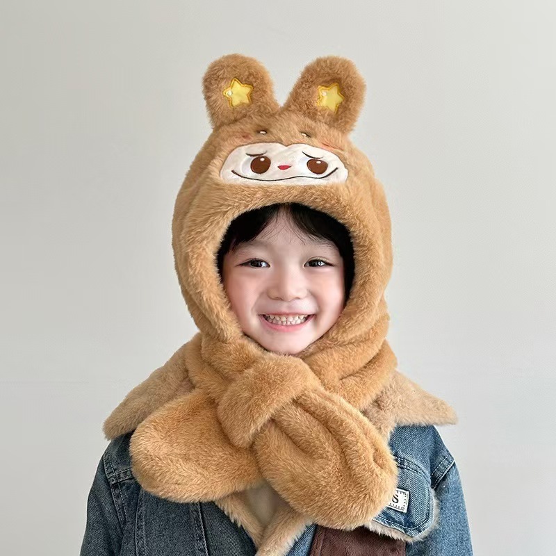 卡皮巴拉帽子围巾一体儿童保暖加厚毛绒帽男女宝宝防寒冬款护耳帽