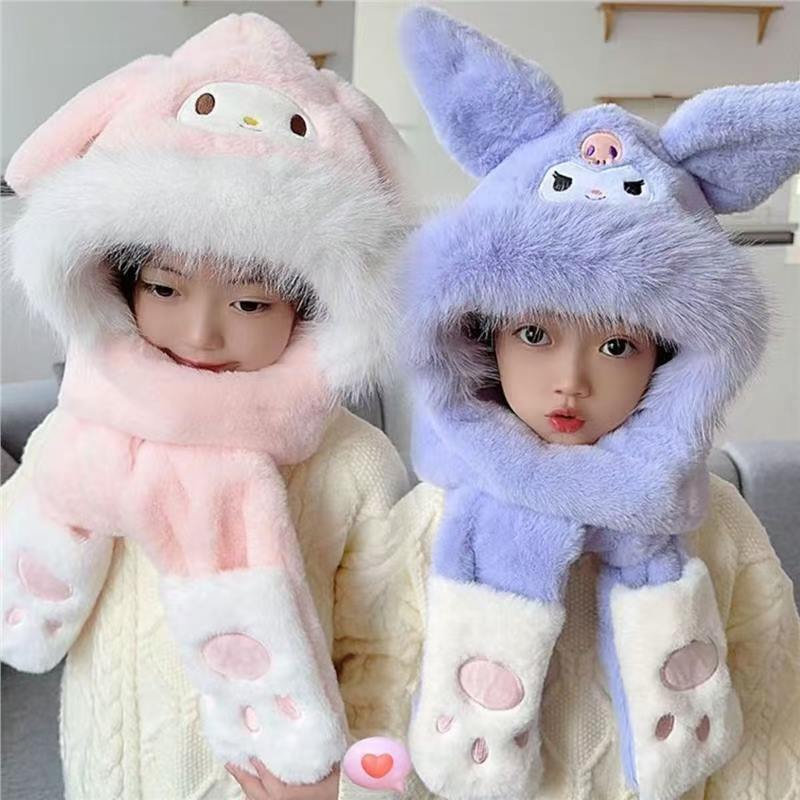 新型子供冬のクロミメロティのマフラーの帽子の手袋の一体の3セットは厚くて暖かいです。