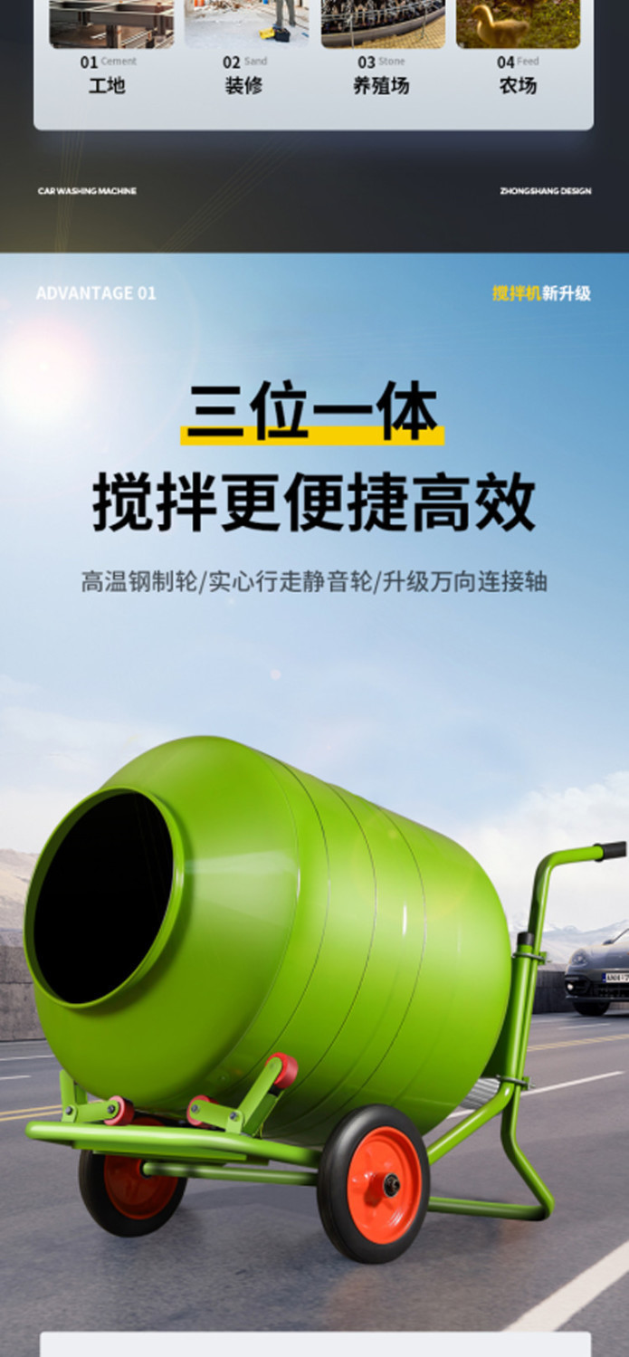 セメントモルタルコンクリートミキサー混合土ドラム式220V電気家庭用小型飼料ミキサー