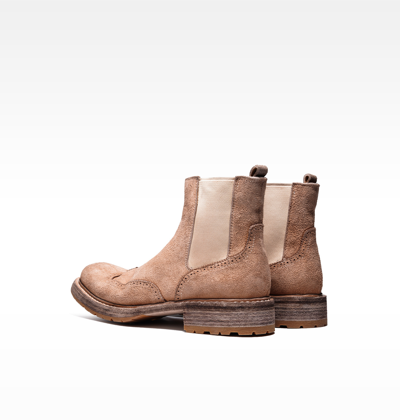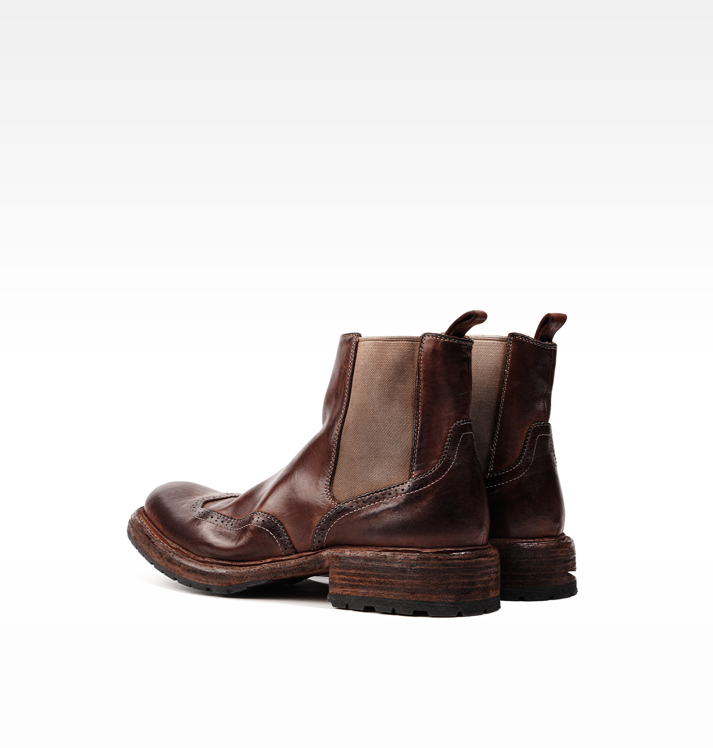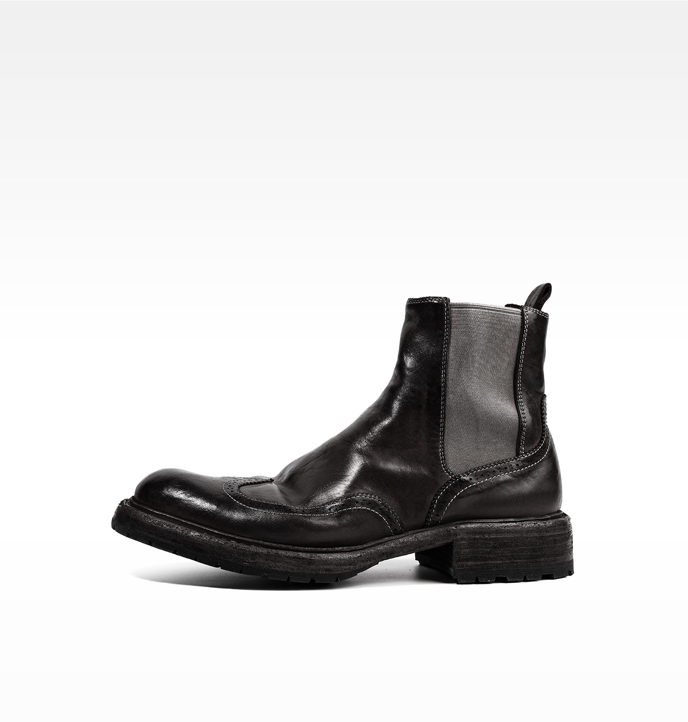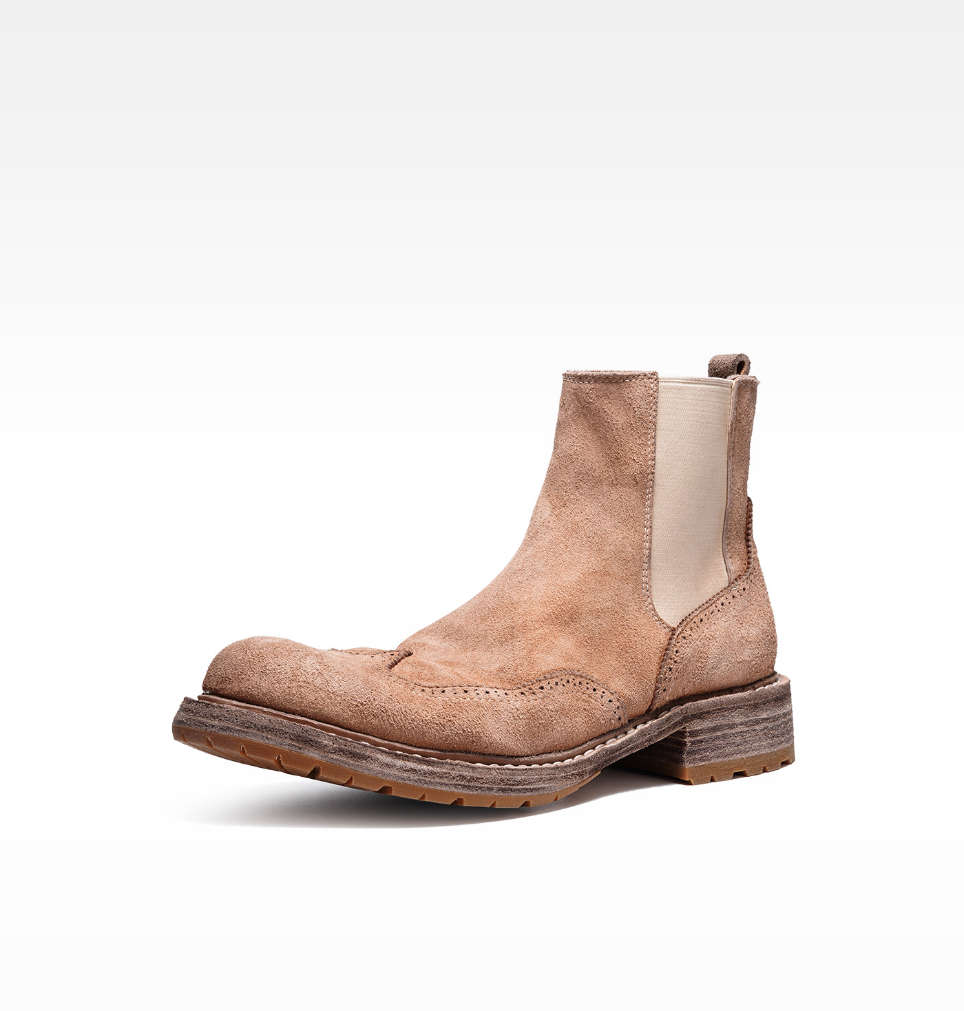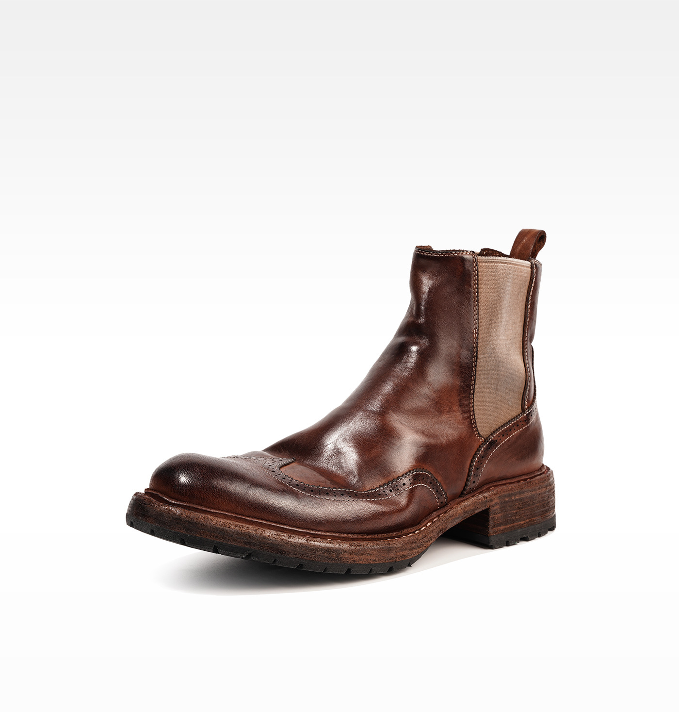 ウォッシュ加工とダメージ加工を施したチェルシーレザーメンズブーツ、本革ソール、メンズショートブーツ、越境EC、一件代発送、身長アップ