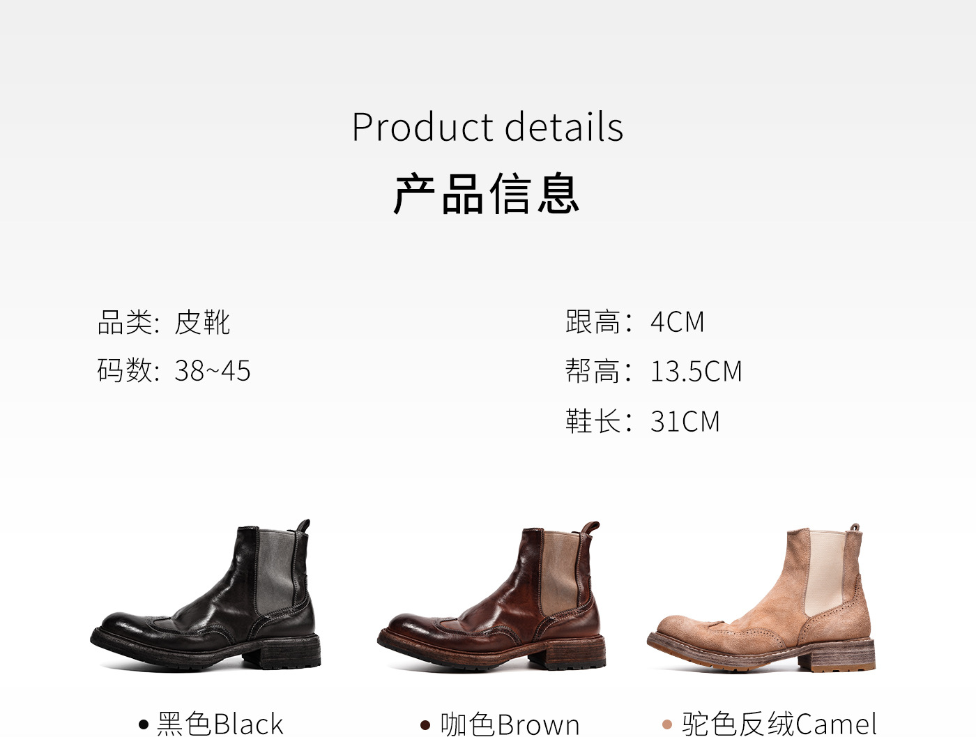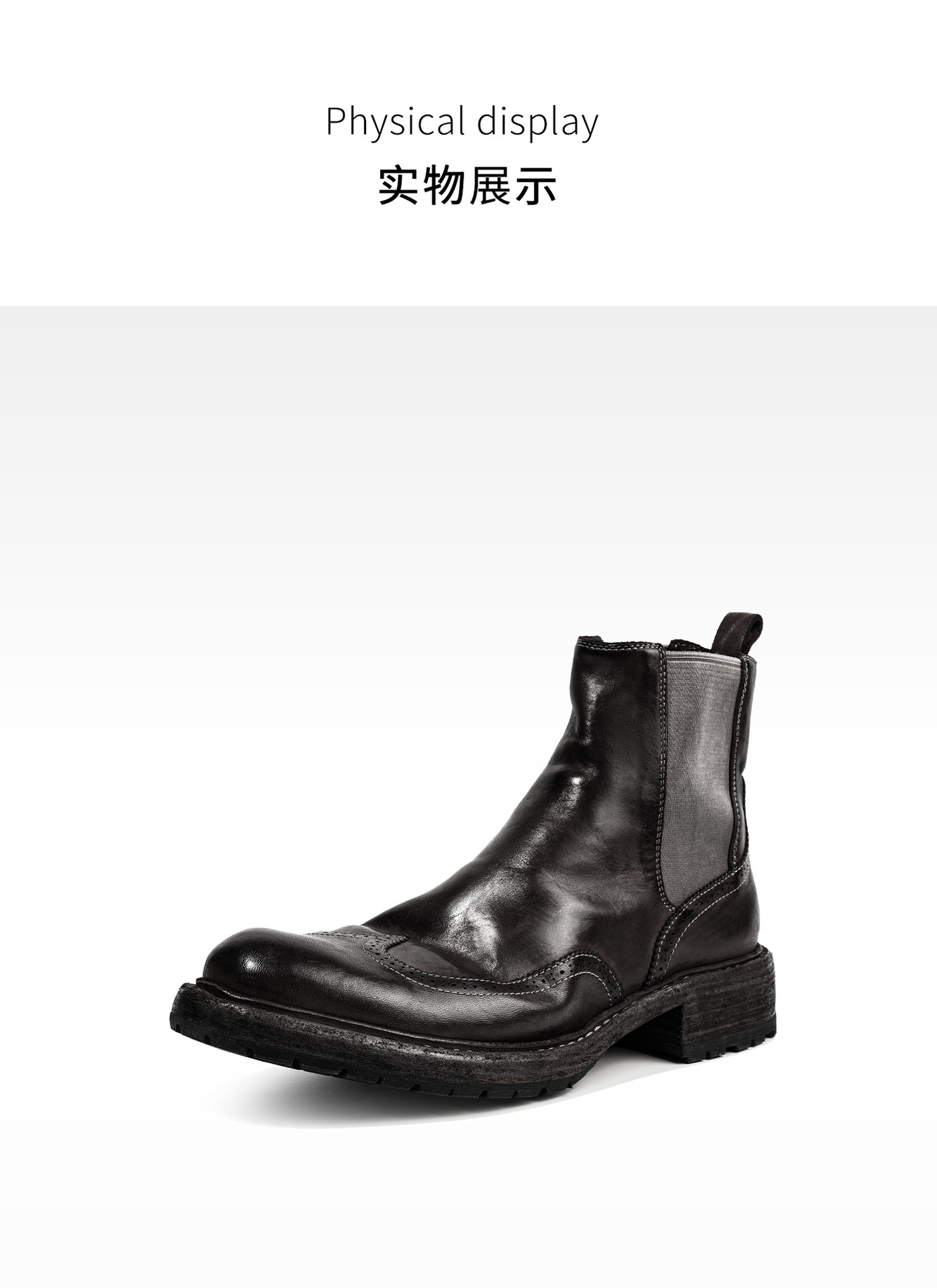 D95秋冬チェルシーショートブーツ男性英倫風百合カジュアル高組マーティンブーツ本革レトロ手作り