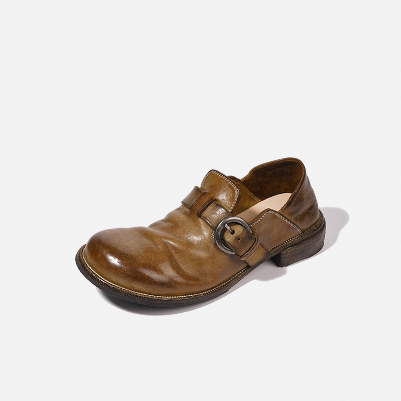 工場直販 ビルケンシュトック風 ウォッシュド馬革 通気性抜群 手作りローファー 高級感あふれる革靴