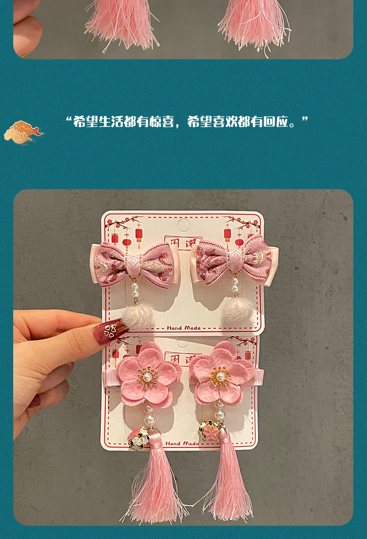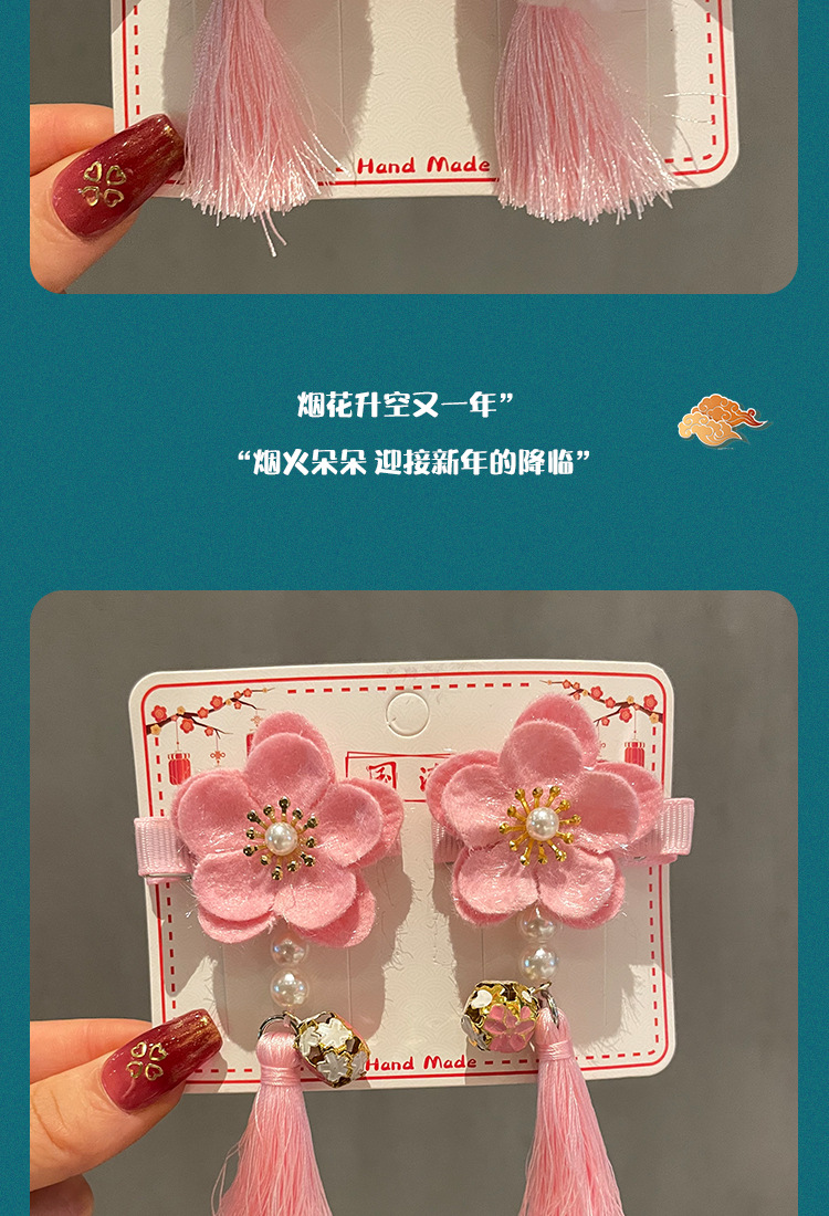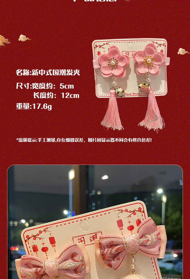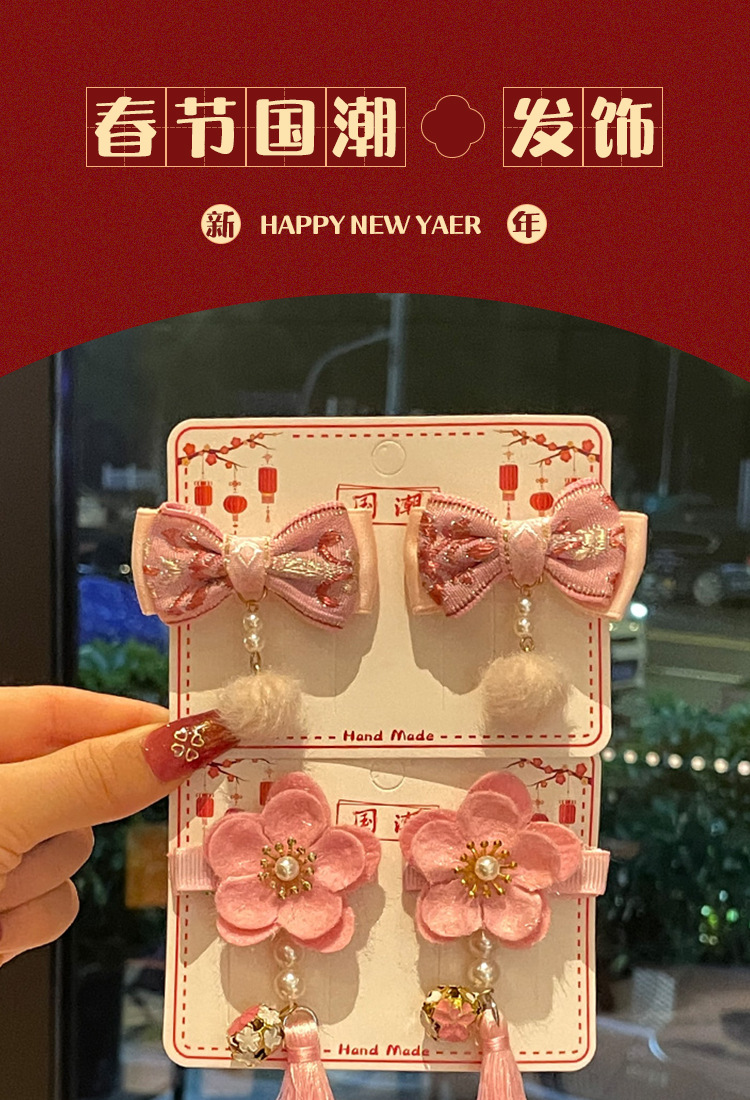中国風子供ヘアクリップ新年ヘアアクセサリー女の子赤いヘアカードフリンジヘア女の子かわいいクリップアクセサリー
