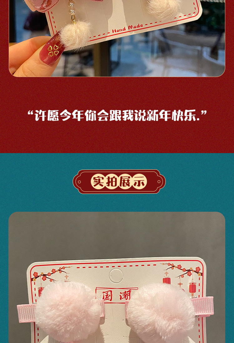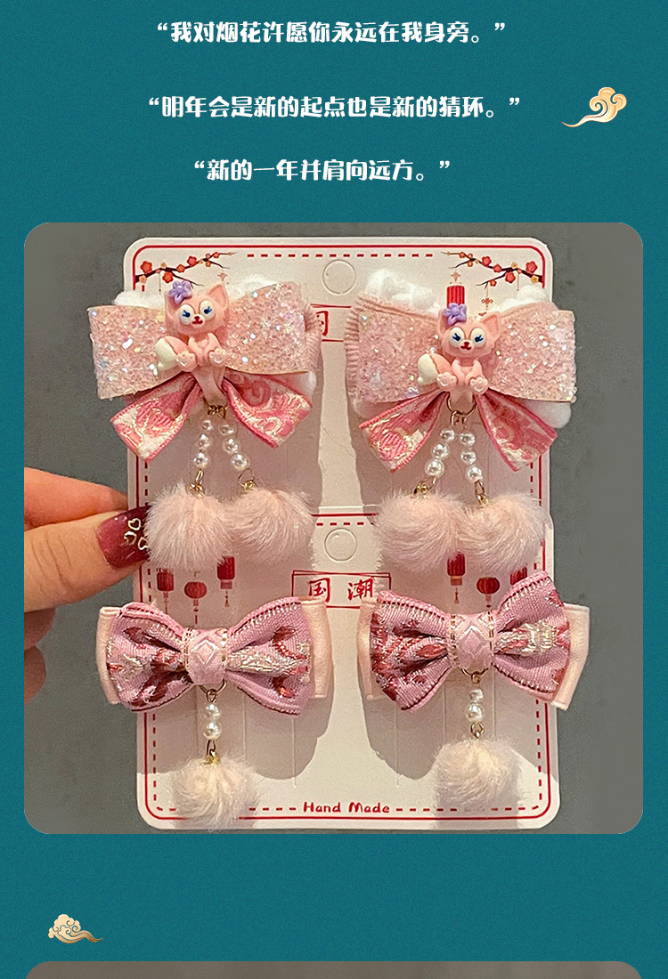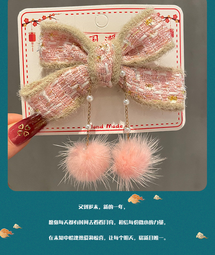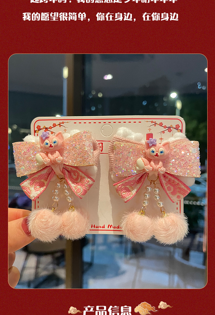 新年の子供のぬいぐるみのヘアピン2025の新型の蝶結びの女の子の頭飾りの新年のクリップの女の子の髪飾り