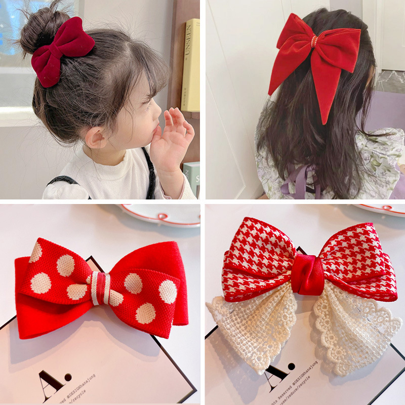 国風の赤い蝶結びの髪飾りの子供の新年のかわいい女の子の赤ちゃんの新年のお祝いの髪飾り