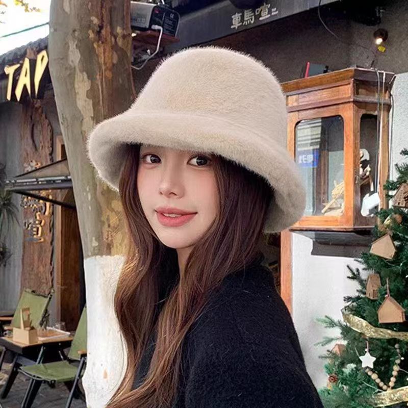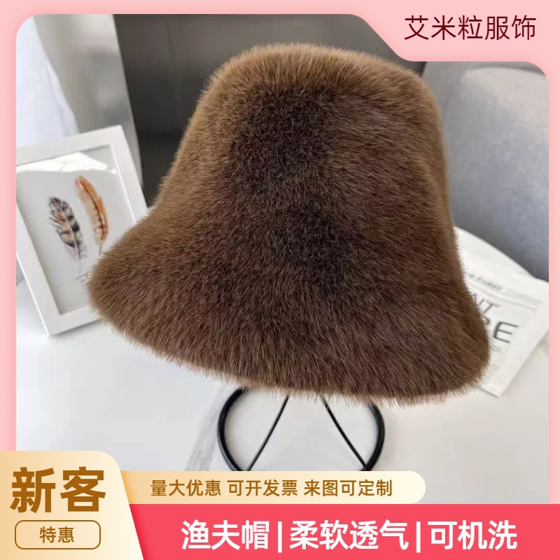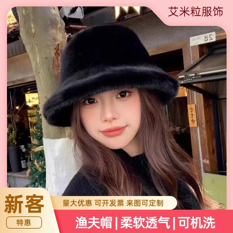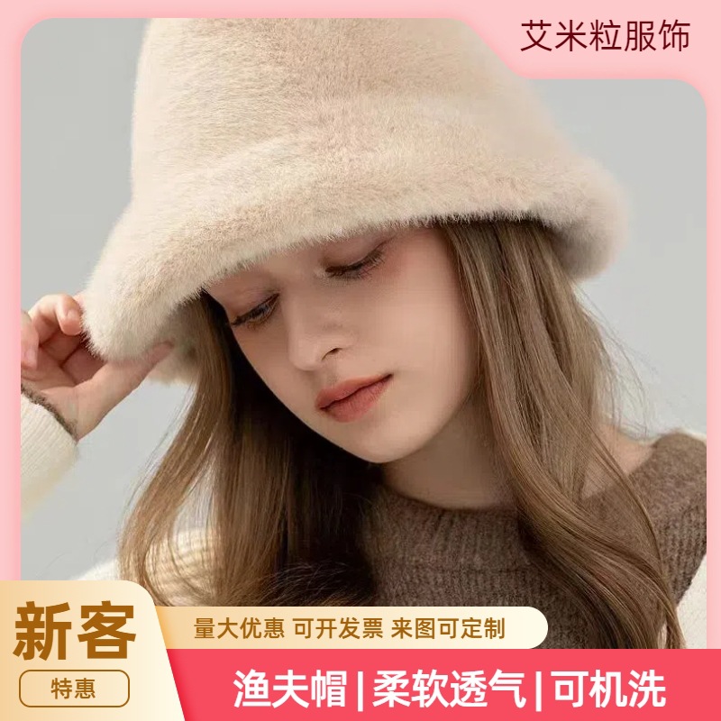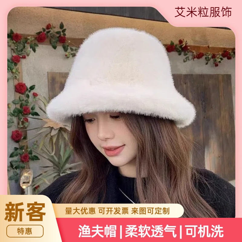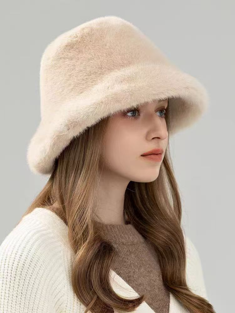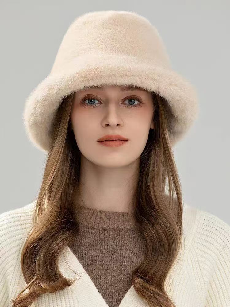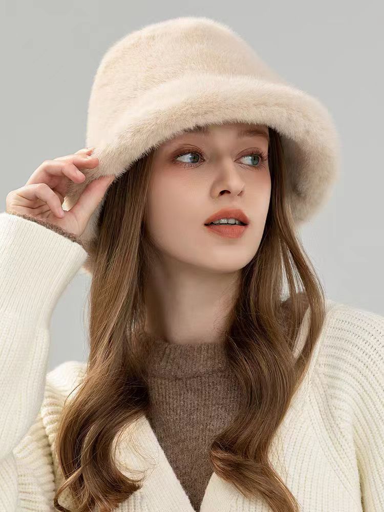 冬の毛皮帽子、女性用秋冬防寒帽子、白と黒、顔が小さく見える漁師帽、高級感