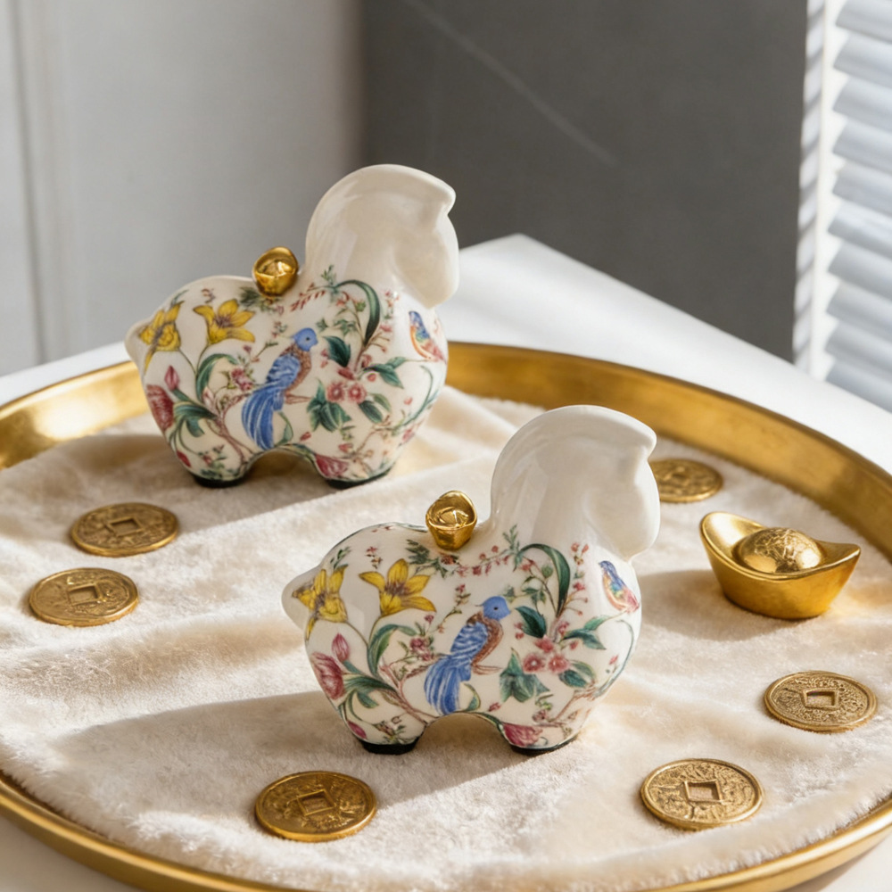 创意美式复古陶瓷公鸡摆件