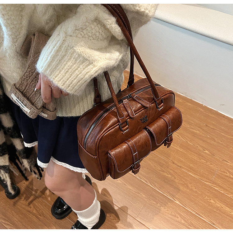 高級レトロショルダー脇バッグ2025新作ピローバッグシンプル通勤レディースバッグニッチトレンドクロスボディバッグ