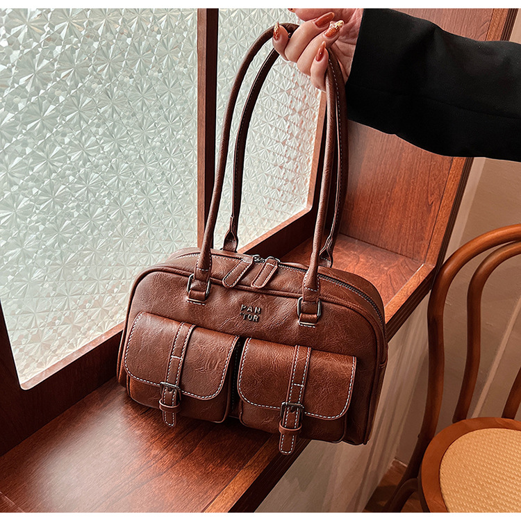 高級な質感はレトロな腋の下のバッグの女性2024の新しいボーリングバッグである