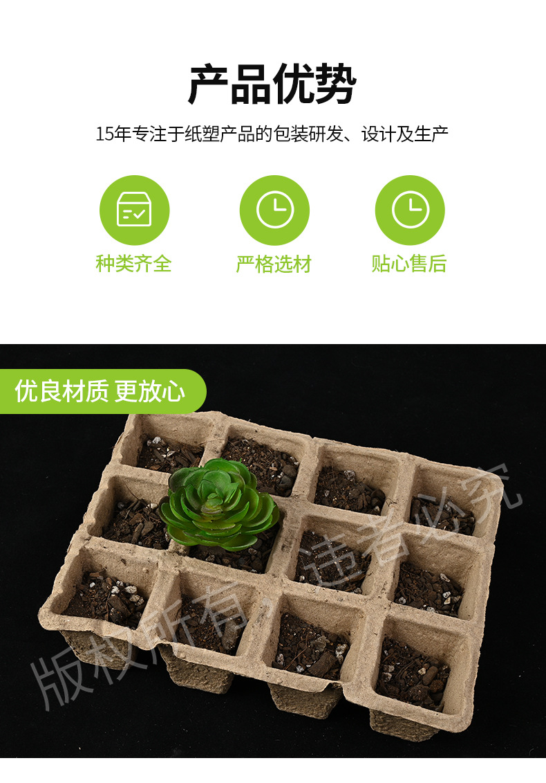 パルプ12格有孔育苗盤大容量使い捨て多肉緑植園芸種子発芽保護根育苗カップ