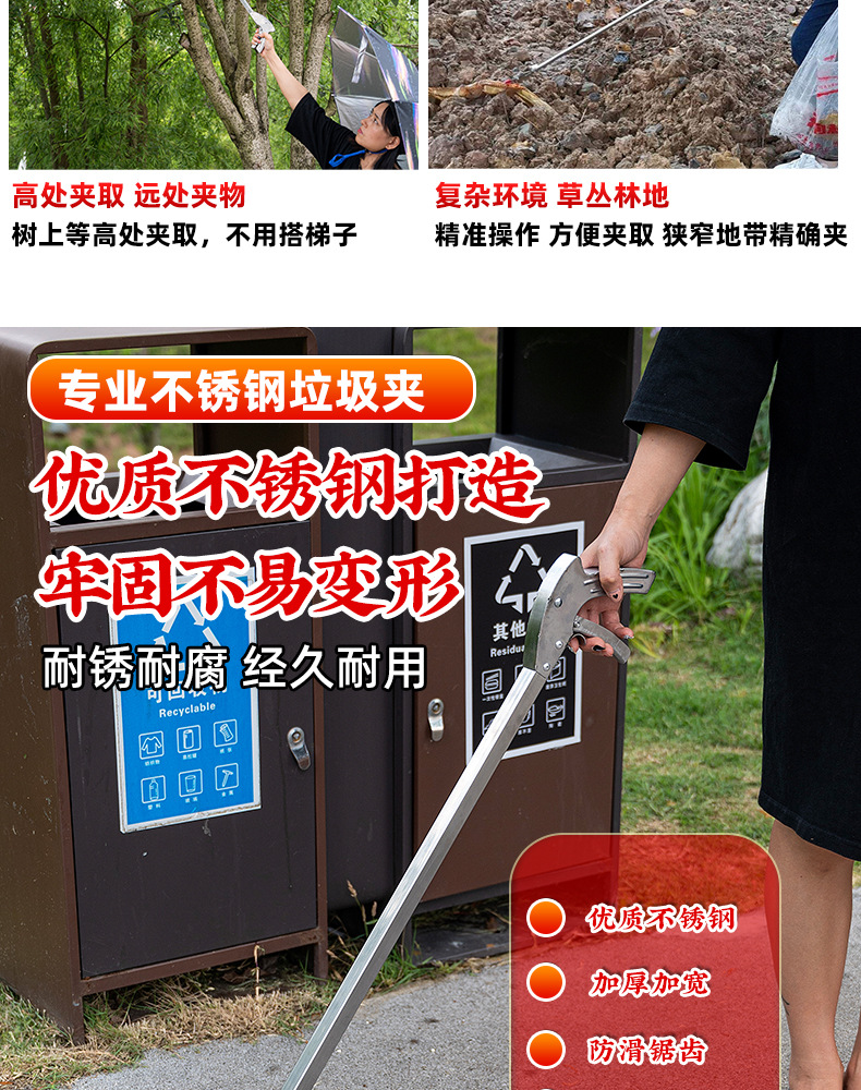 ステンレスの延長ごみのクリップの環衛は長い柄のはさみのトイレの野外のピックアップのごみを拾います。