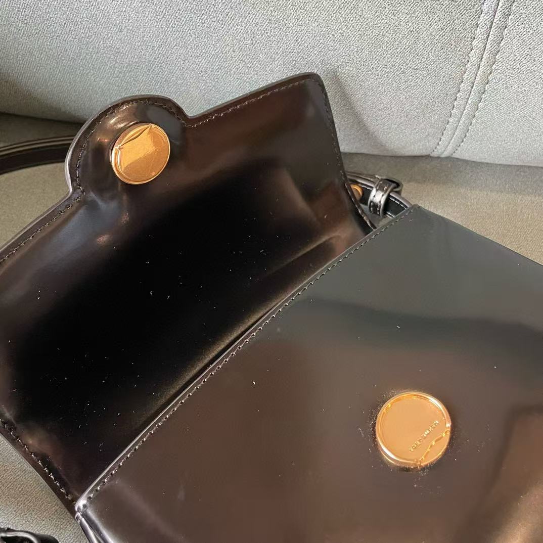 TB新款油蜡皮黑银mini手提包Kira菱格小方包百搭单肩斜挎链条小包
