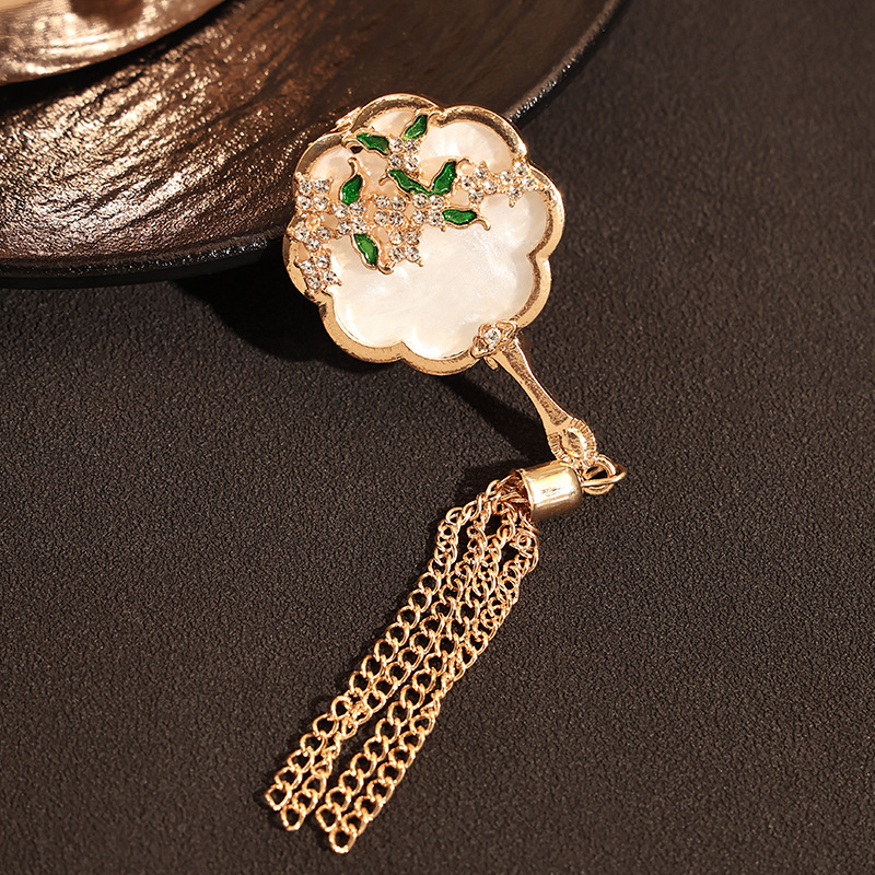 天然贝母胸针高档女桂花团扇流苏精致别针优雅气质胸花大衣配饰品