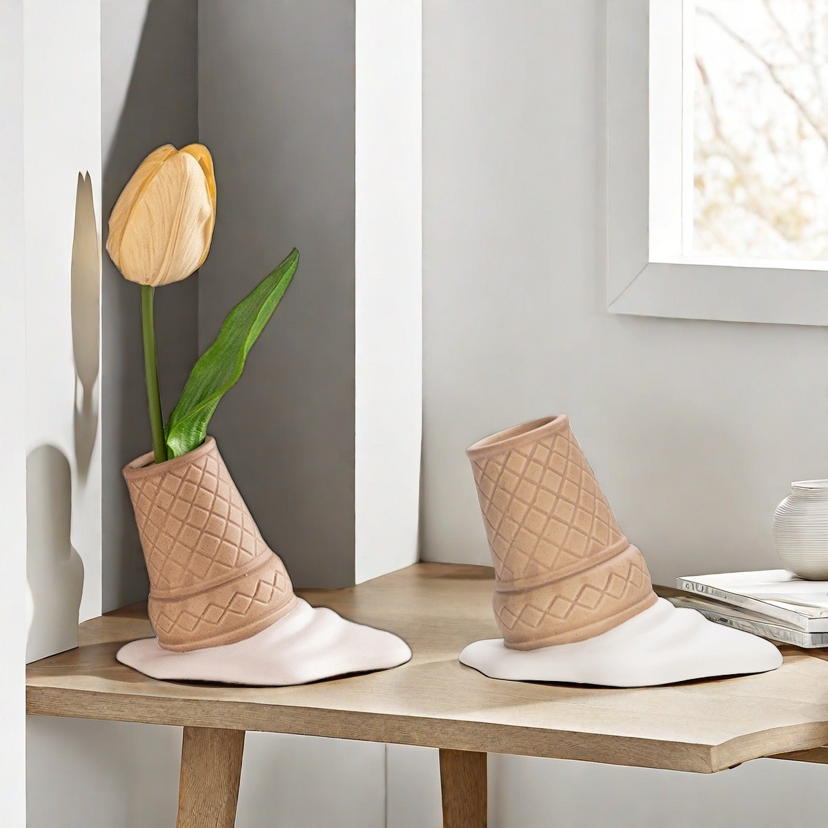 クロスボーダーアイスクリーム陶磁器花瓶装飾置物リビング生け花陶磁器創意花シミュレーション花小花瓶