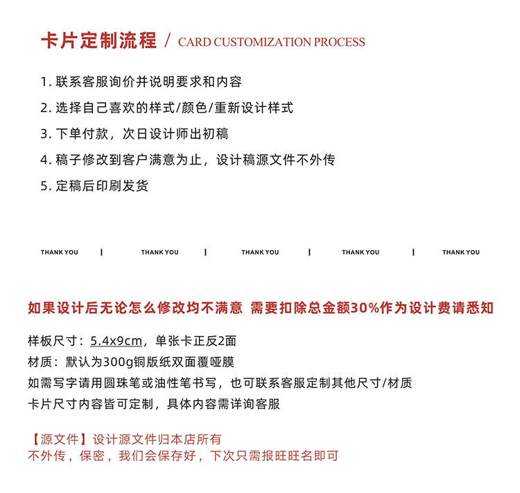 卡片尺寸:请看图片标注 内容:正面印花+反面空白