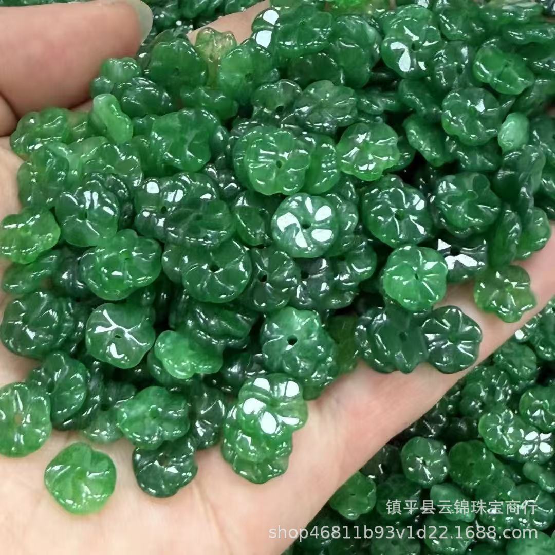 翡翠玉干青五瓣花玉石散珠铁龙生玉钱扣手链项链饰品配件隔片隔珠