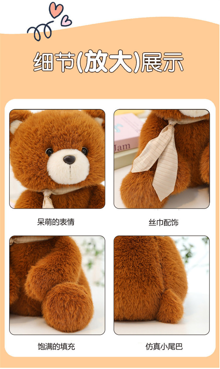 领带巴塞熊毛绒玩具抓娃娃机表白公仔儿童睡觉抱枕送闺蜜棕熊礼物
