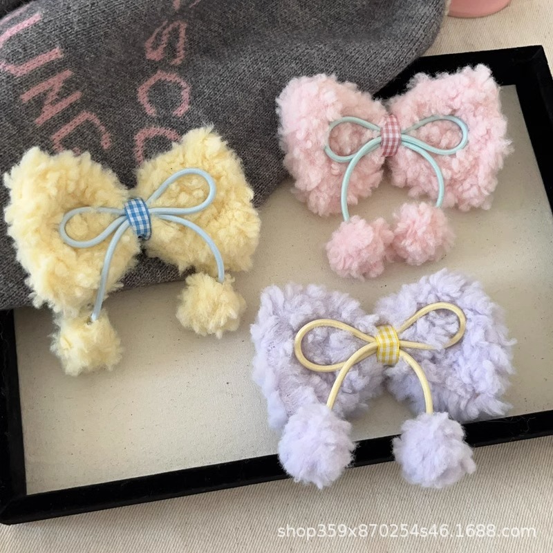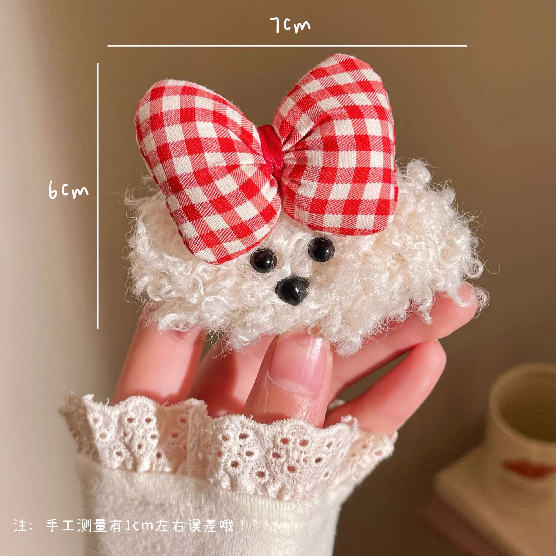 羊羔毛小狗发夹女秋冬季日系小众蝴蝶结边夹少女心卡通毛绒绒发饰